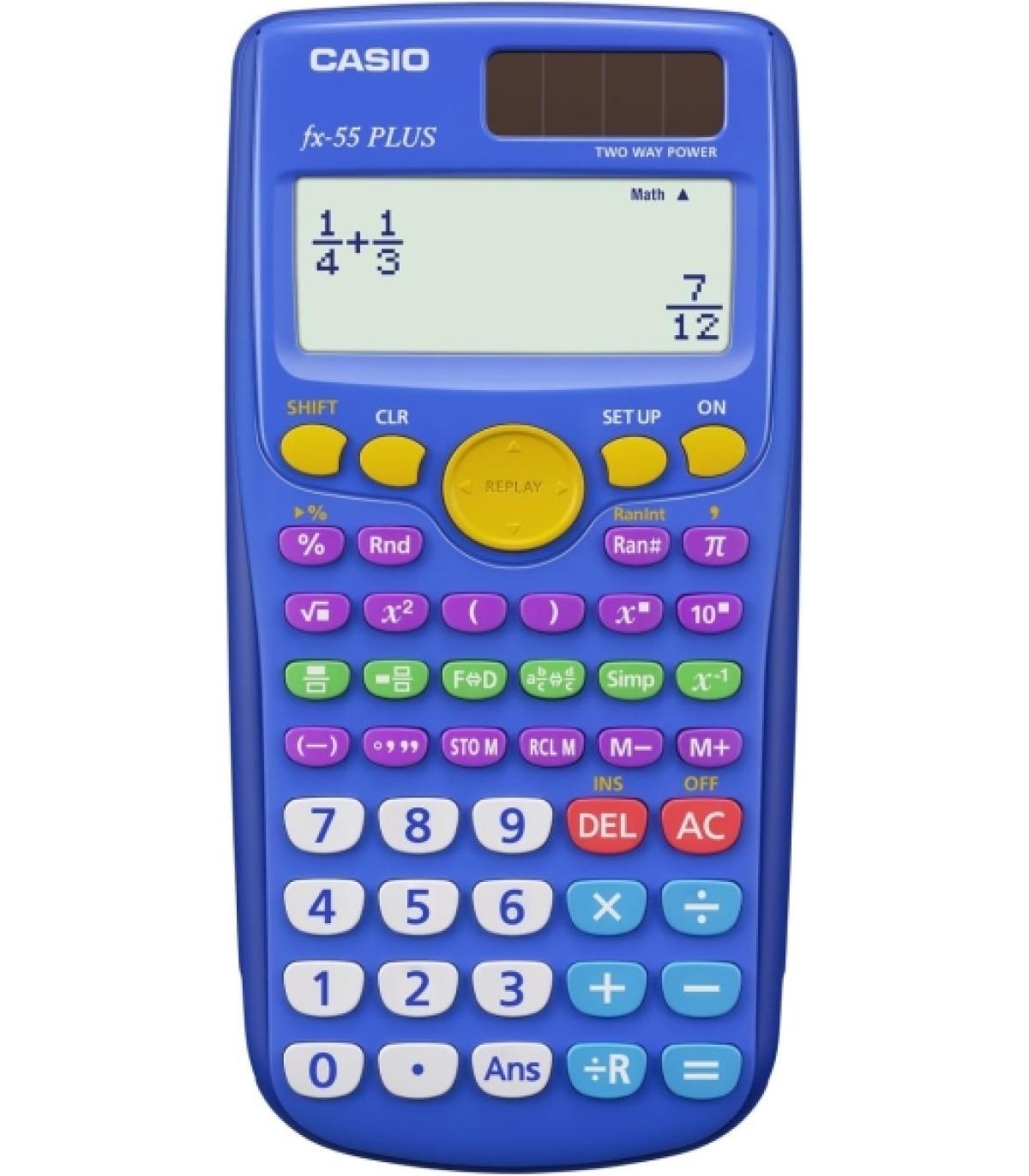 La calculadora ideal para primaria. Con las funciones agrupadas por colores y una pantalla grande, la fx-55 PLUS es el mejor aliado para el desarrollo matemático en primaria.