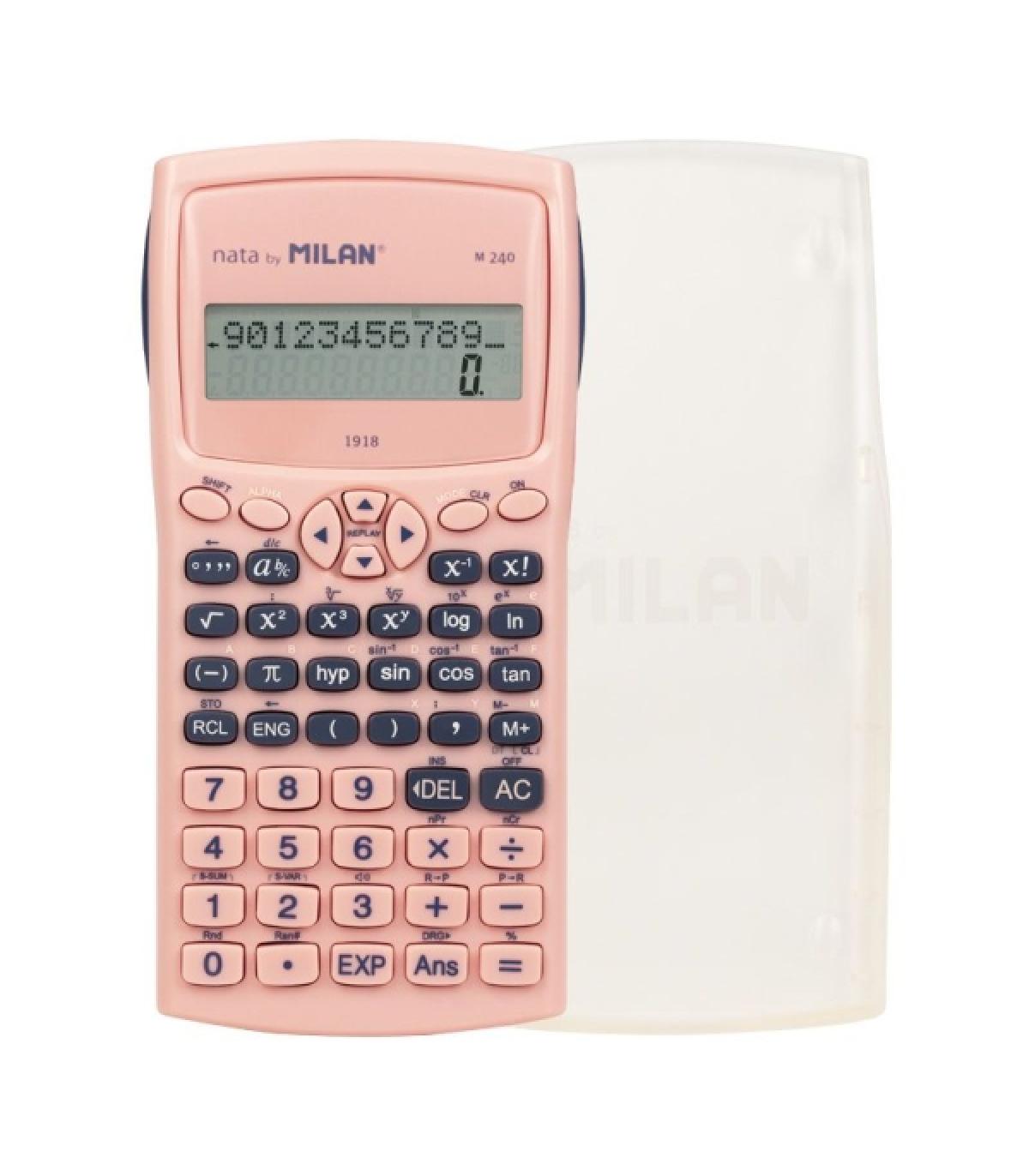 Calculadora científica M240, colección 430 since 1918. Color rosa, con resistente carcasa protectora translúcida. Pantalla de 2 líneas de lectura, de 10+2 dígitos. Visualización de expresión y resultado de manera simultánea. 240 funciones integradas, incluyendo 124 científicas. Colección 430 since 1918, inspirada en los colores y diseño originales de las gomas de borrar MILAN, fabricadas en España desde 1918.