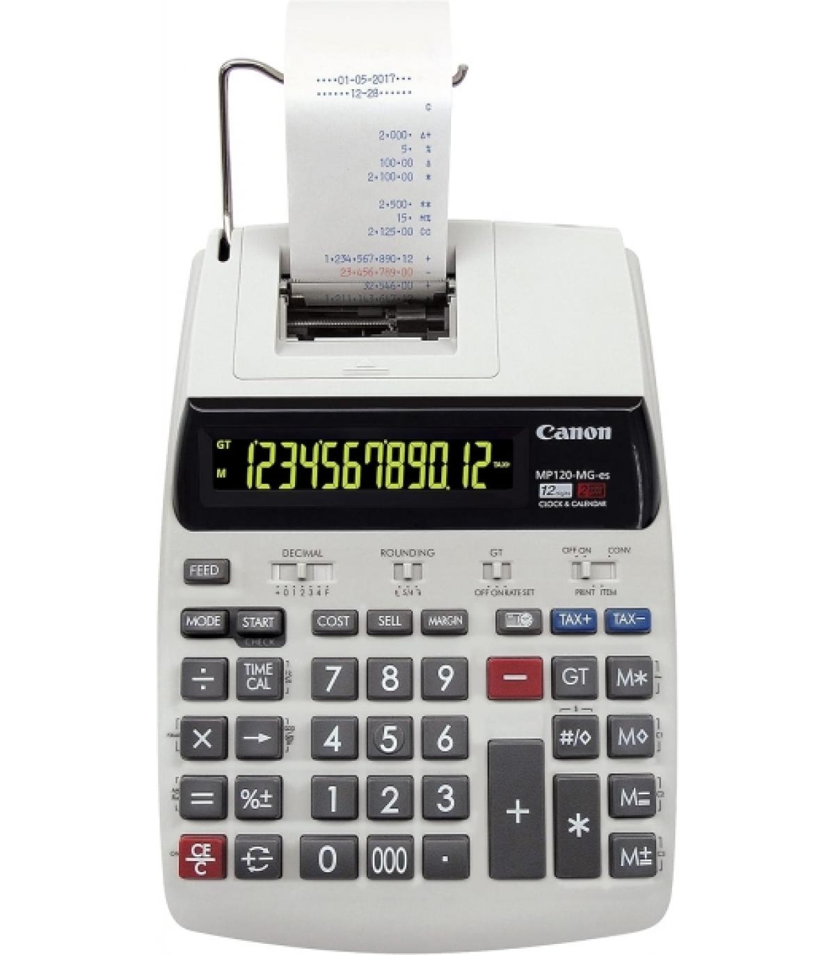 La calculadora de 12 dígitos Canon MP120-MG es la calculadora de escritorio ideal para controlar las finanzas de su negocio o de su hogar, con una velocidad de impresión de 2,7 líneas por segundo. Cuenta con un teclado silencioso y de trazo continuo para un funcionamiento rápido y estable, cálculo de conversión de impuestos, negocios y divisas y función de reloj y calendario. La hora se puede cambiar entre formatos de 12 y 24 horas, mientras que la fecha se puede imprimir directamente con una sola pulsación. Esta función es esencial para el registro instantáneo de la impresión para una fácil referencia.