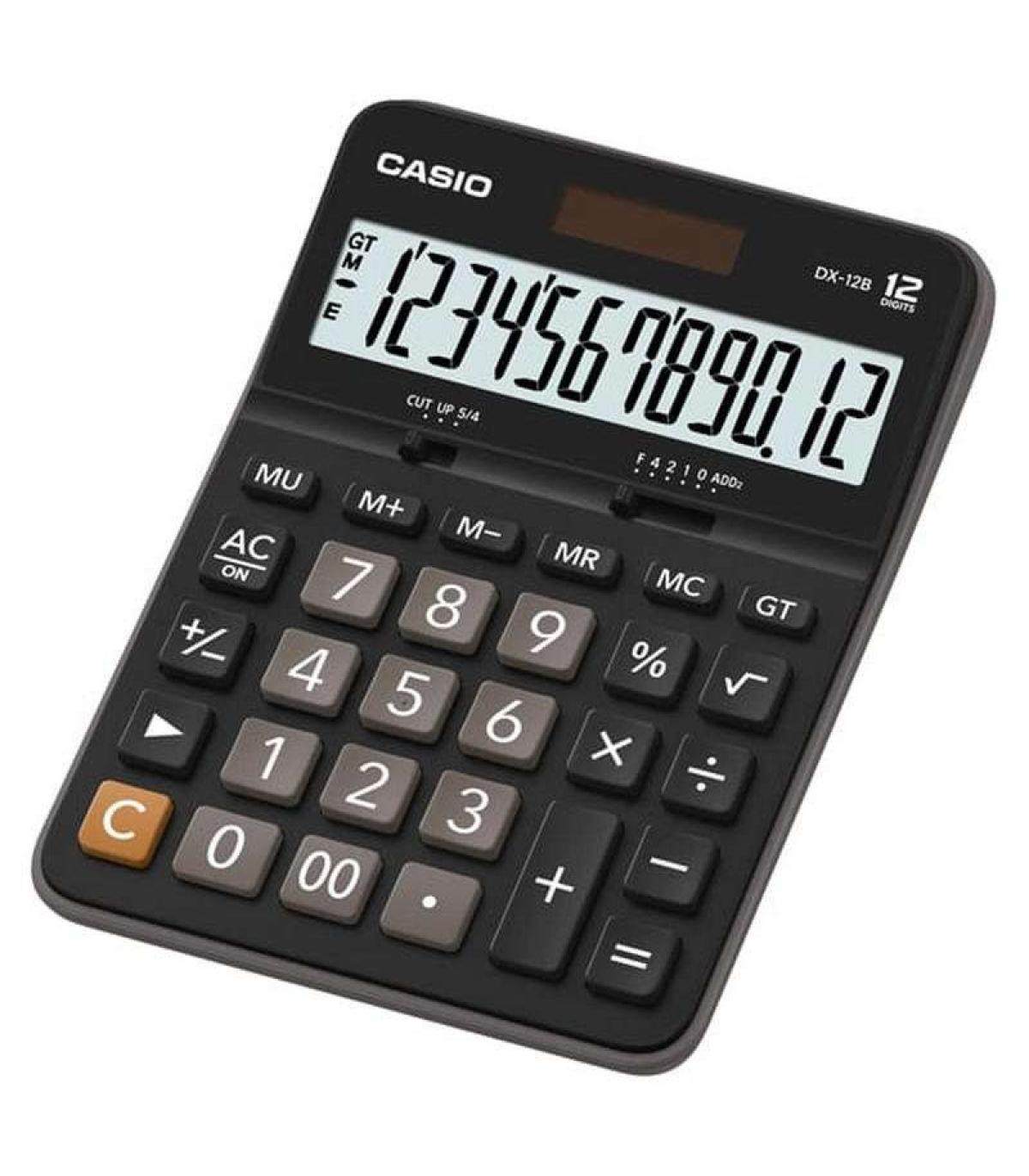 Calculadora Casio de escritorio de la serie 120B que te permite hacer cálculos de tipo ordinario en tu lugar de trabajo. Diseño ergonómico, bordes curvos y gran pantalla de 12 dígitos, cuenta con Gran Total y selectores de decimales y redondeo de acuerdo a tus necesidades.