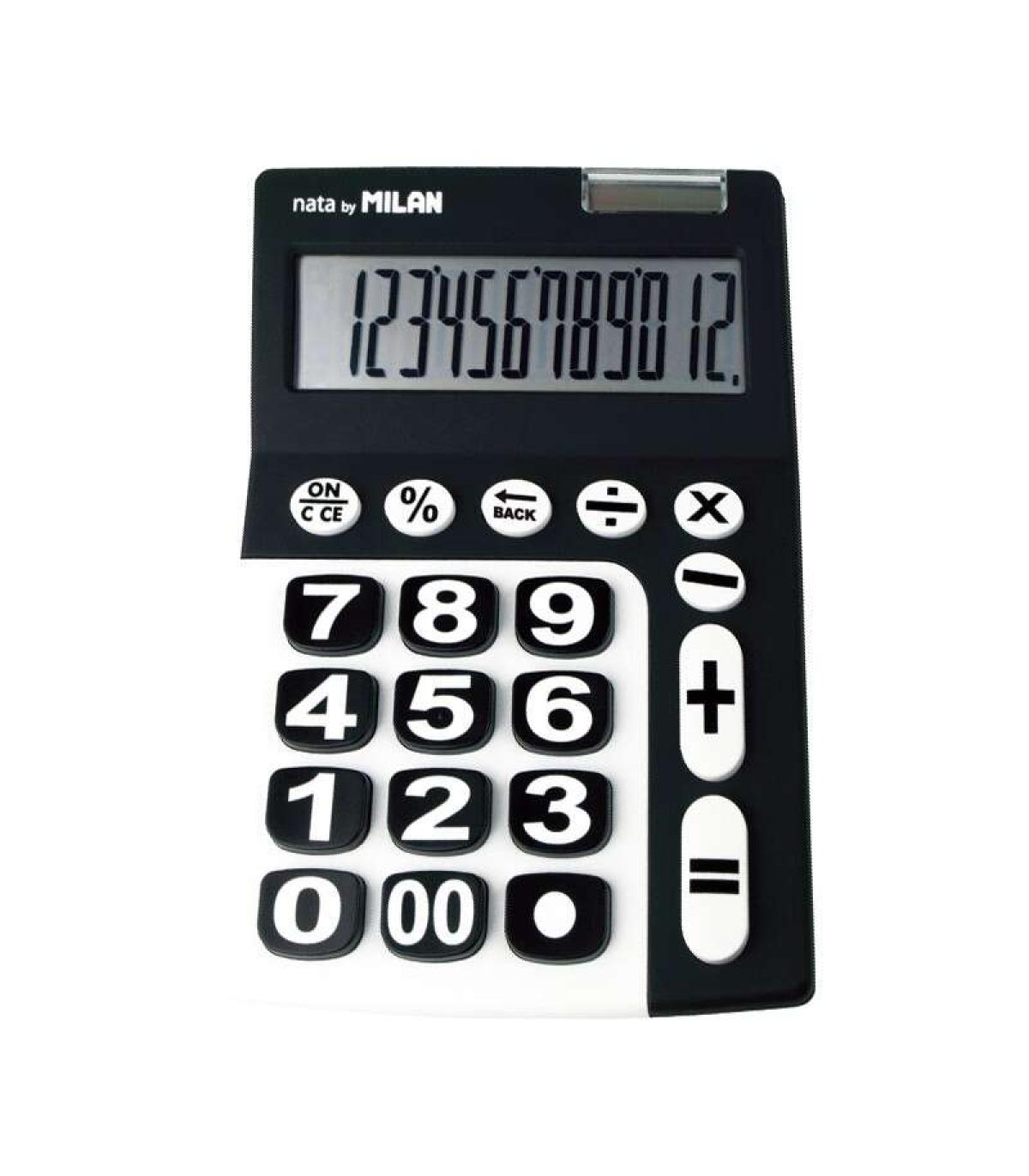 Calculadora de sobremesa extra-grande, de 12 dígitos y teclas grandes. Tecla de rectificación de entrada de datos. Alimentación dual: célula solar y pila de 1,5 V. Apagado automático. Medidas calculadora: 22,5 x 14 x 3 cm. Color negro con panel blancO.