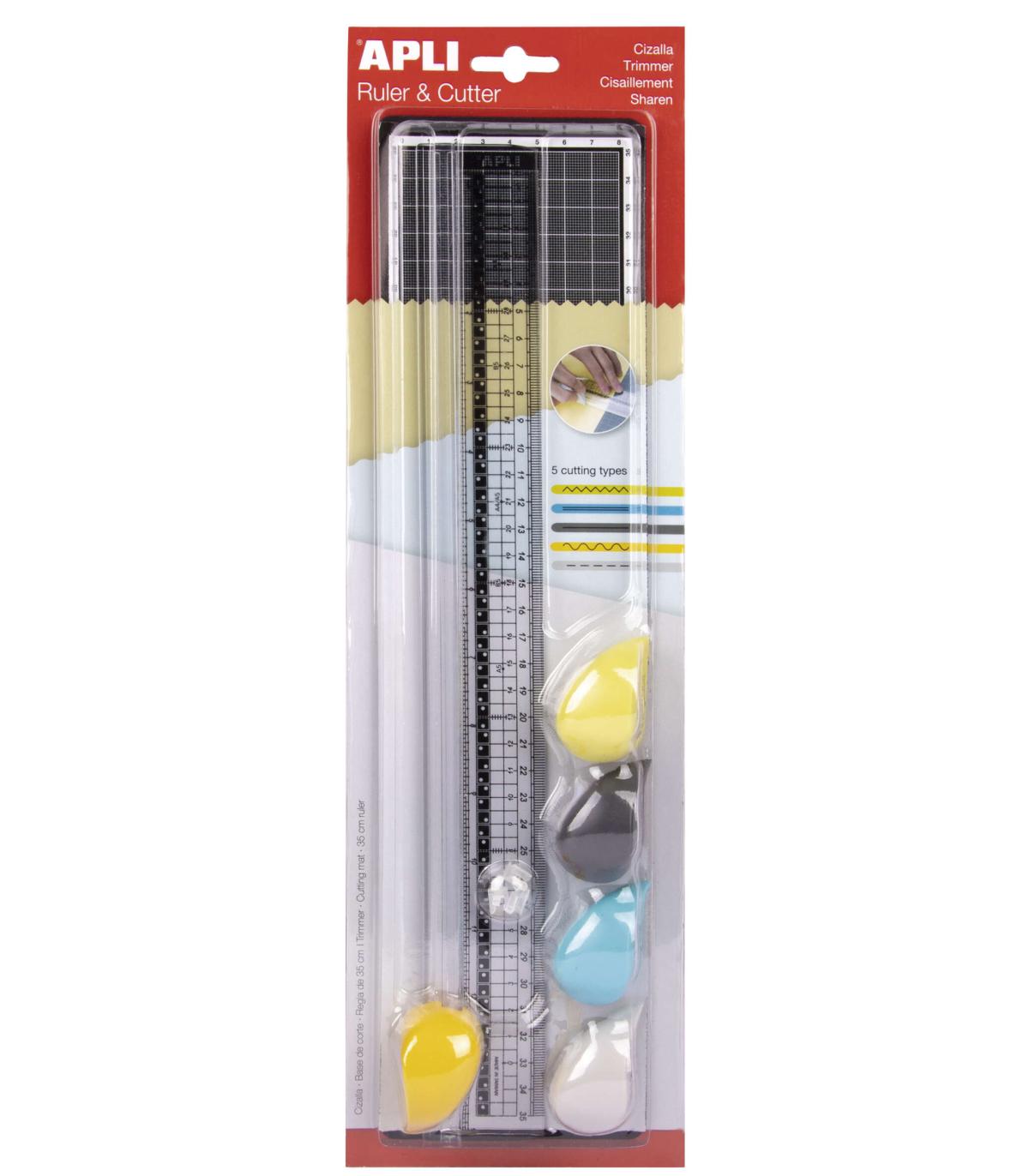 La cizalla de corte es una herramienta compuesta por una regla de 35 cm, una tabla de corte de 10 x 38 cm y 5 cizallas diferentes. La regla cuenta con marcaje en cm, mm y pulgadas, y un clip de seguridad para evitar deslizamientos durante el corte. La tabla de corte incorpora una cuadrícula milimetrada para mayor precisión en tus proyectos y evitar rayaduras. Las 5 cizallas tienen un agarre ergonómico para mayor comodidad y realizan diferentes tipos de corte: línea recta, Zigzag, ondulado, línea discontinua y marca de hendido. Esta herramienta es versátil y útil tanto en casa como en la oficina, permitiéndote cortar y realizar manualidades con papeles, cartulinas, fotos, papel de fax, documentos plastificados, etc.