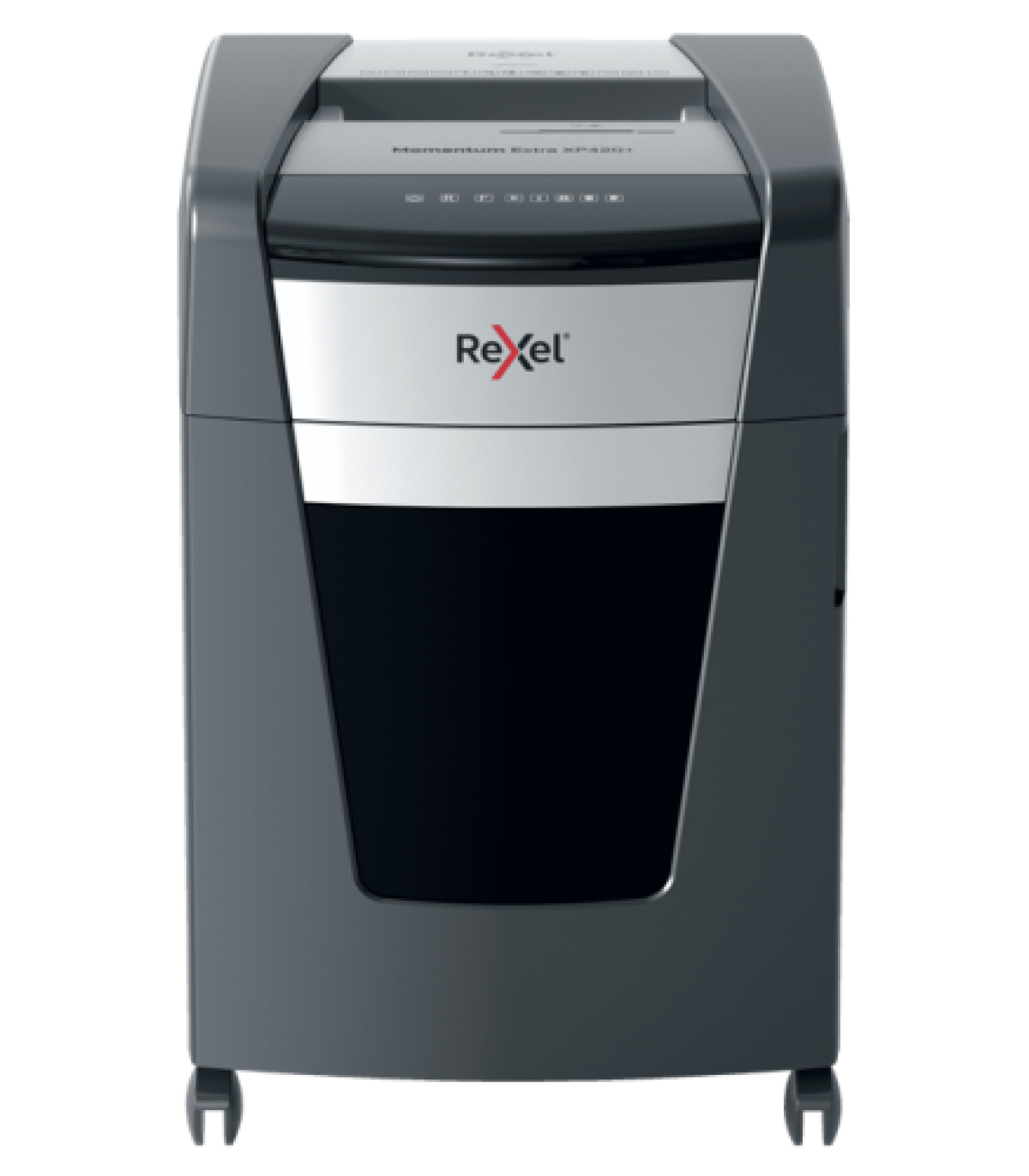 Rexel XP420+. Tipo de triturador de papel: Corte cruzado, Tamaño de trituración de papel: 4 x 35 mm, Capacidad de la cesta: 60 L. Ancho: 512 mm, Profundidad: 457 mm, Altura: 722 mm