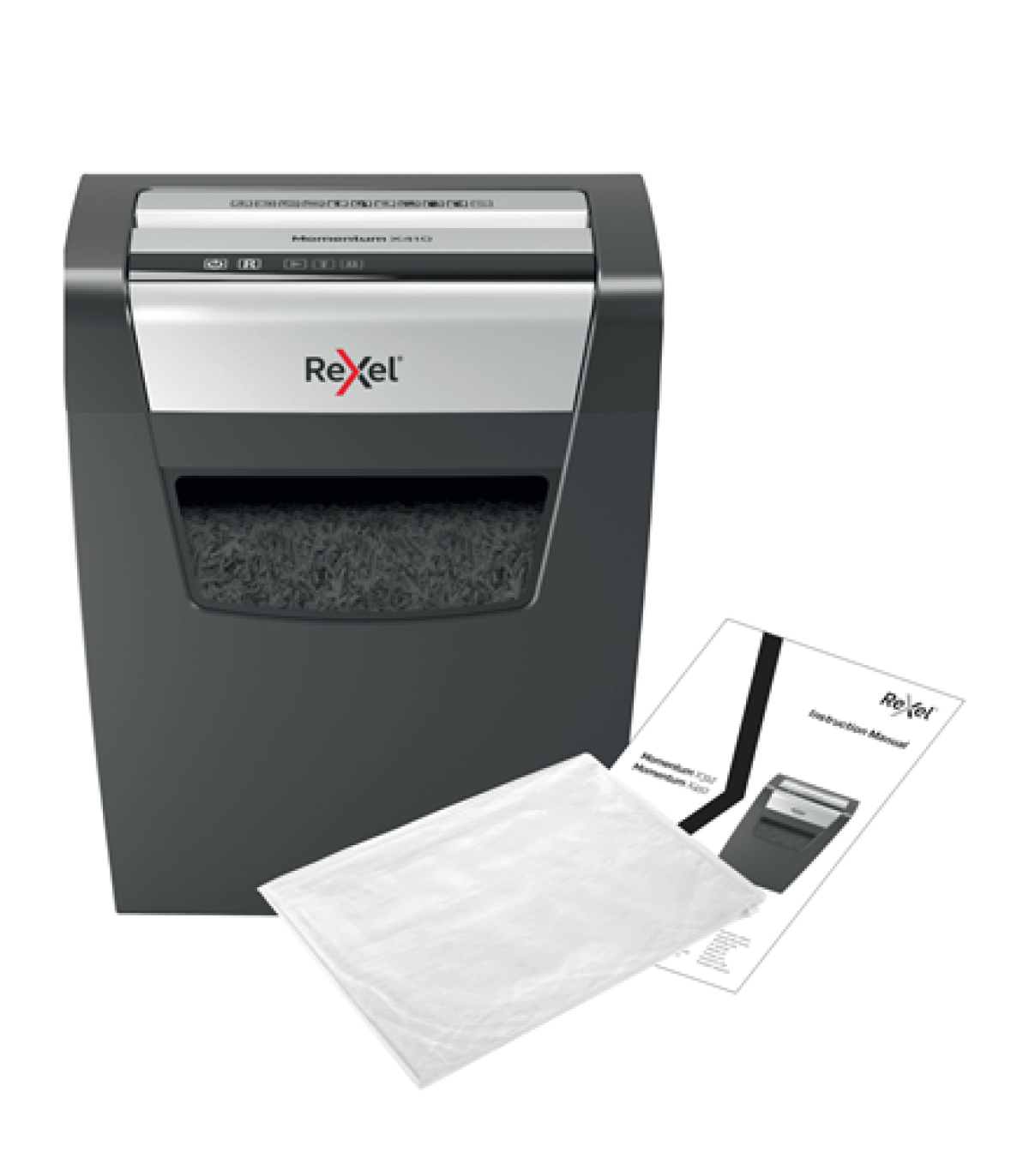 Rexel Momentum X410. Tipo de triturador de papel: Corte en partículas, Tamaño de trituración de papel: 4 x 28 mm, Capacidad de la cesta: 23 L. Ancho: 356 mm, Profundidad: 238 mm, Altura: 423 mm