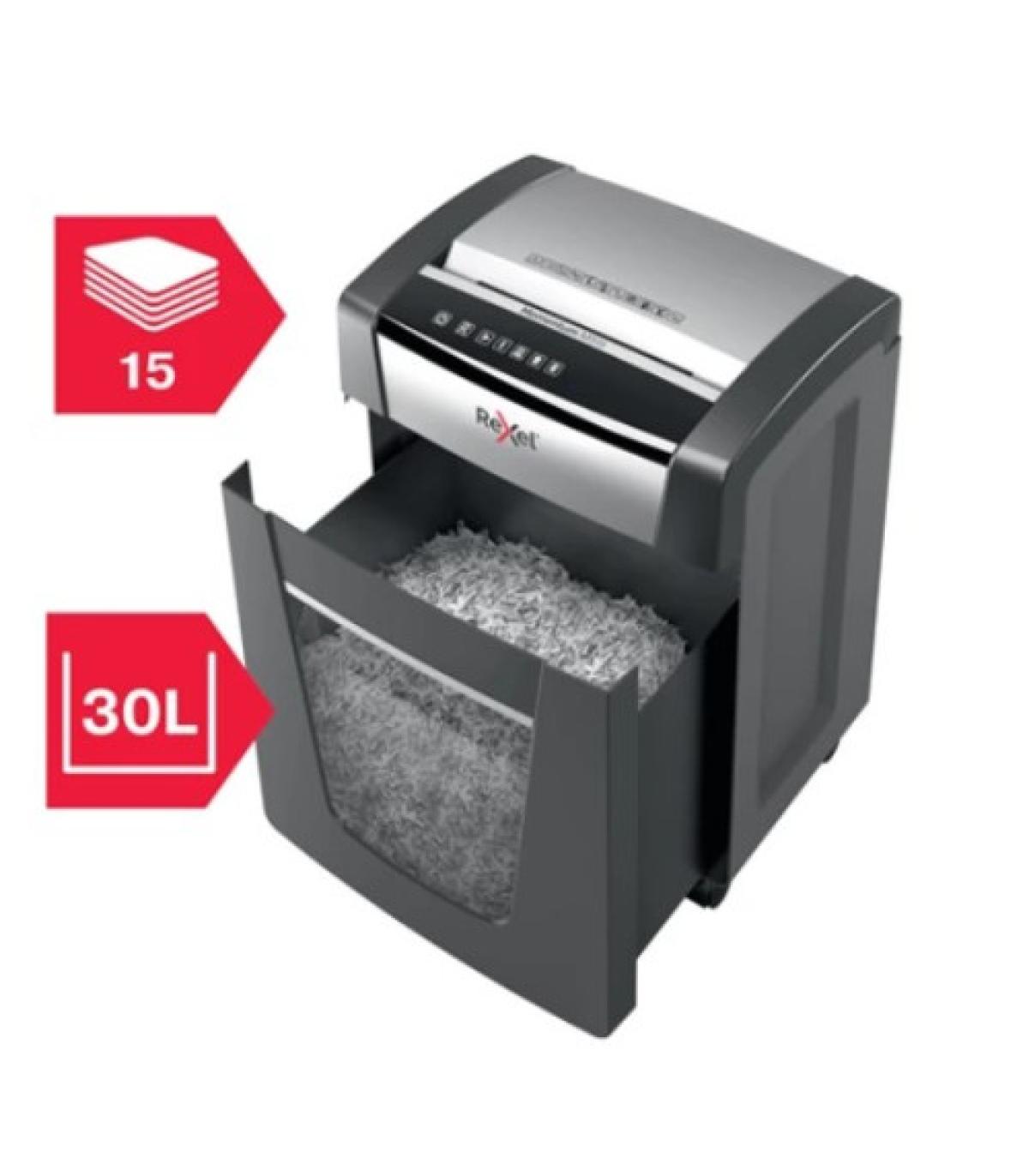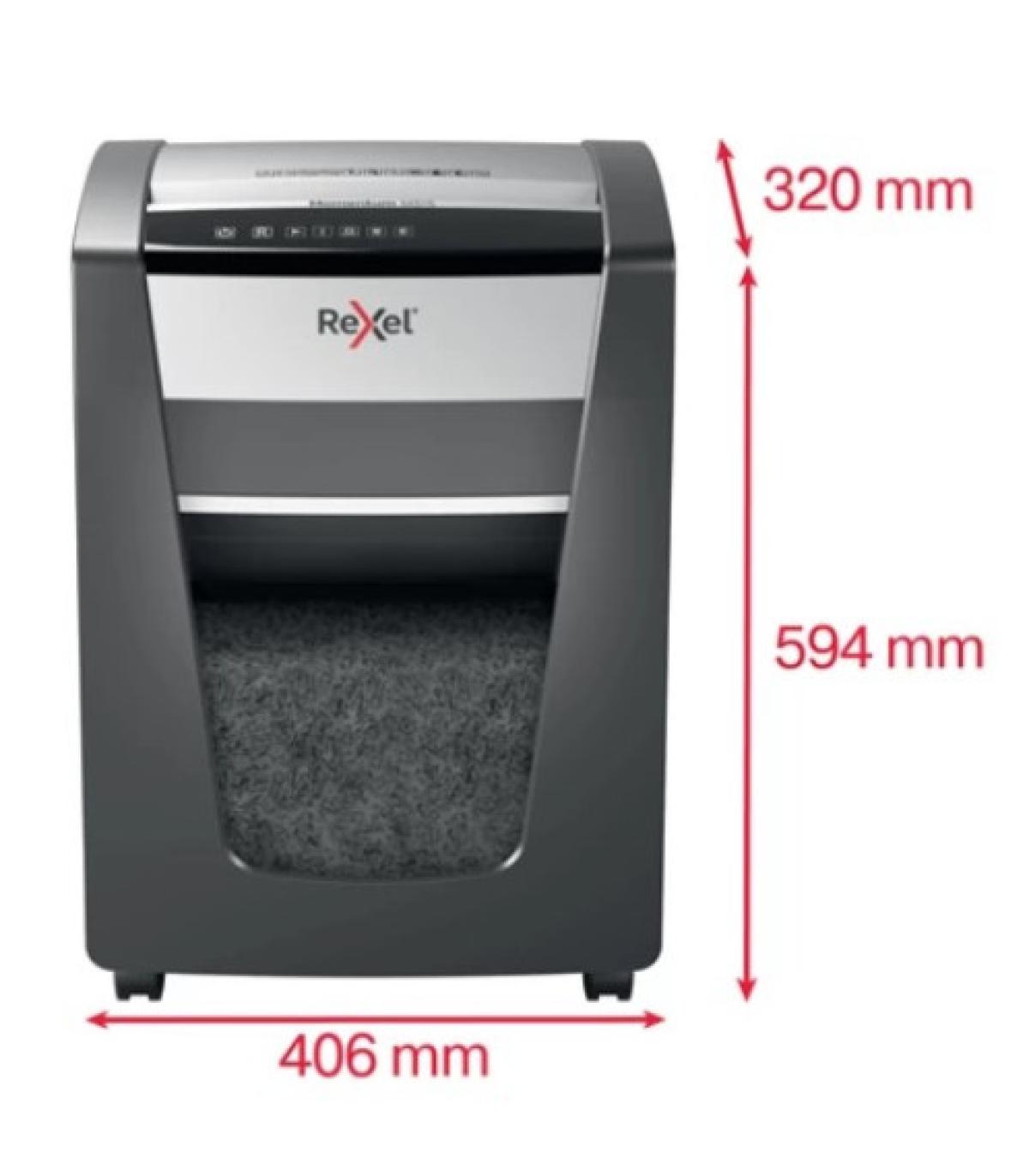 Rexel Momentum X420. Tipo de triturador de papel: Corte cruzado, Capacidad de la cesta: 30 L, Capacidad de cesto: 275 hojas. Voltaje de entrada AC: 220 - 240 V, Frecuencia de entrada AC: 50 Hz, Corriente: 2 A. Certificación: CE. Ancho: 406 mm, Profundidad: 320 mm, Altura: 594 mm