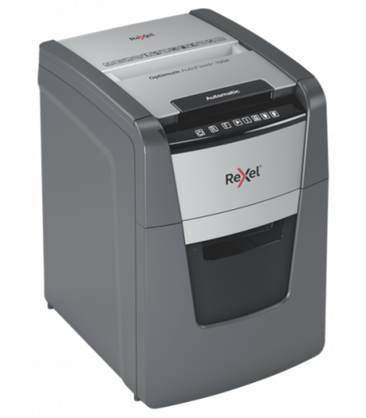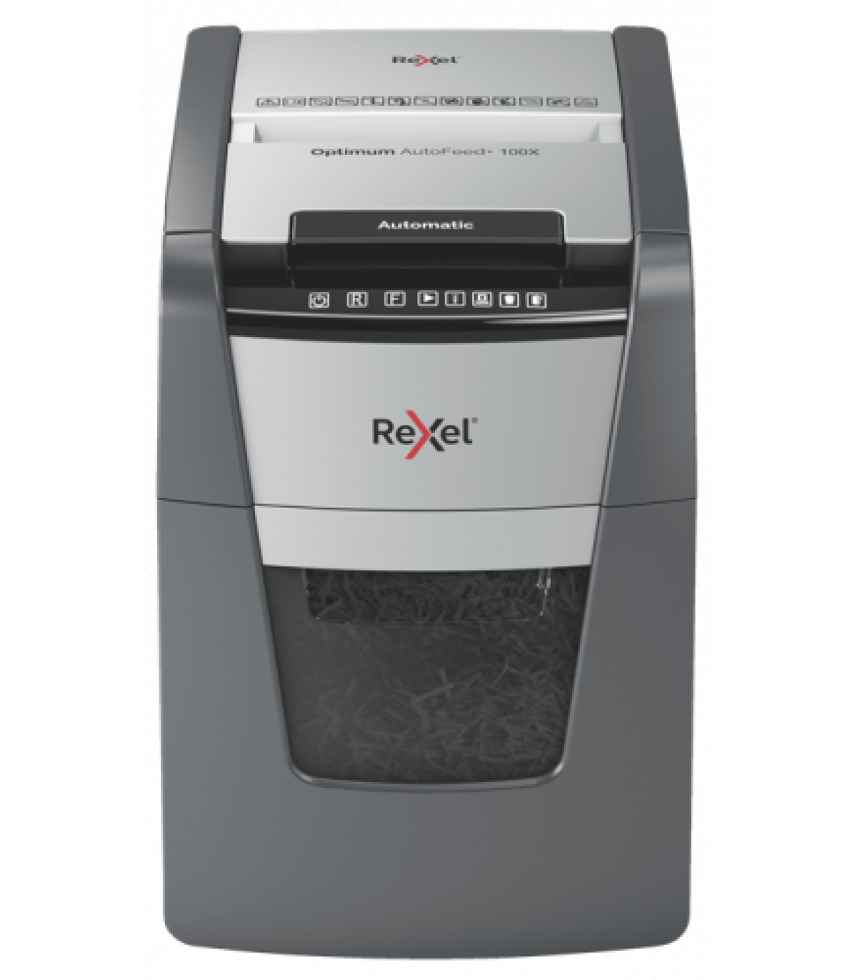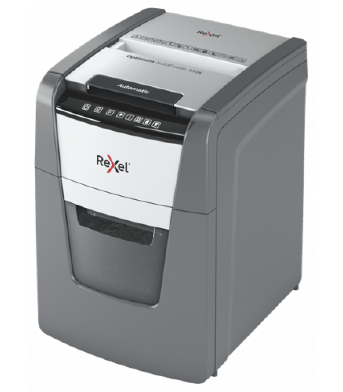 La destructora de corte en partículas Optimum AutoFeed 100X tritura automáticamente hasta 100 hojas de papel A4 (80 grs.) a la vez, en partículas P-4 (4x28 mm). Esta destructora de alimentación automática es una trituradora de oficina sofisticada, con una papelera extraíble de 34 litros. No es necesario alimentar manualmente el papel, ni quitar grapas y clips de papel primero, esta destructora de papel automática hará todo el trabajo por ti.
