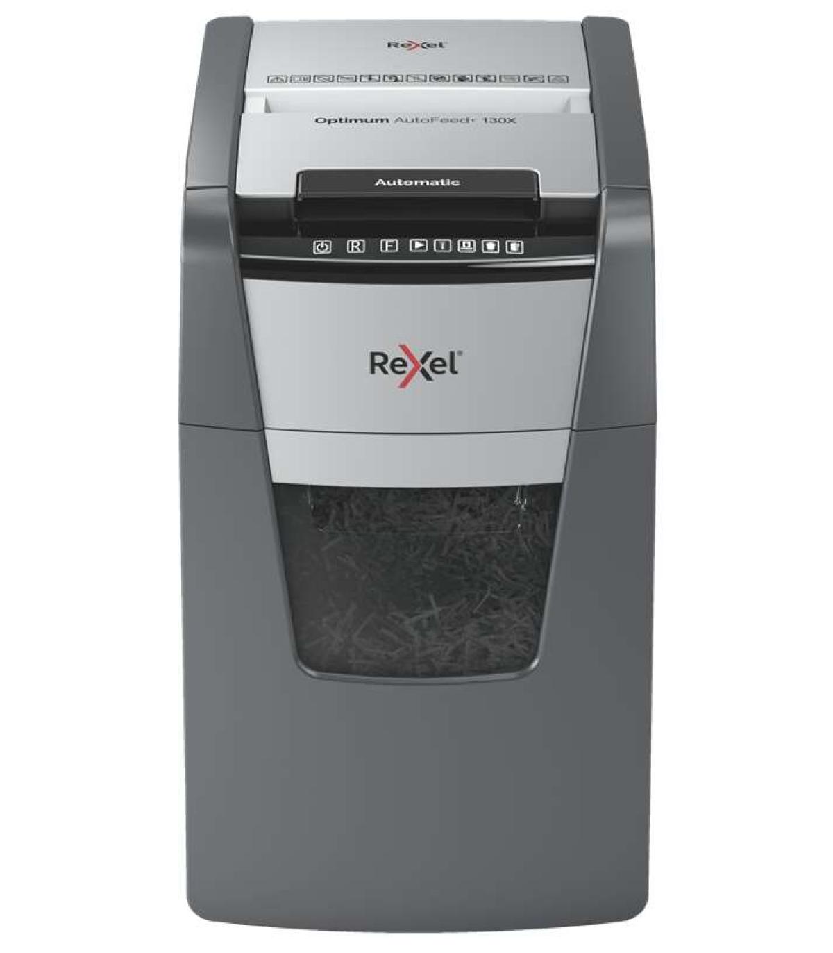 La destructora de corte en partículas Optimum AutoFeed 130X tritura automáticamente hasta 130 hojas de papel A4 (80 grs.) a la vez, en partículas P-4 (4x28 mm). Esta destructora de alimentación automática es una trituradora de oficina sofisticada, con una papelera extraíble de 44 litros. No es necesario alimentar manualmente el papel, ni quitar grapas y clips de papel primero, esta destructora de papel automática hará todo el trabajo por ti.