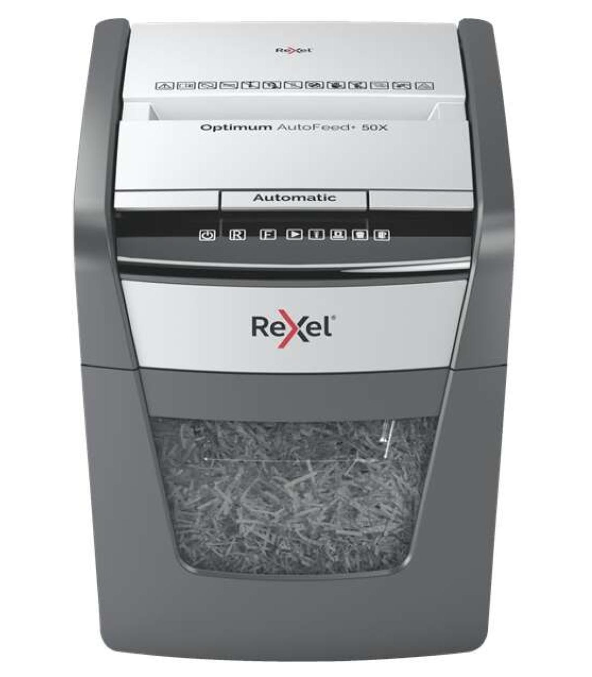 La destructora de corte en partículas Optimum AutoFeed 50X tritura automáticamente hasta 50 hojas de papel A4 (80 grs.) a la vez, en partículas P-4 (4x28 mm). Esta máquina trituradora de alimentación automática es ideal para su uso como trituradora doméstica o de oficina doméstica debido a su contenedor compacto de 20 litros. No es necesario alimentar manualmente el papel, ni quitar grapas y clips de papel primero, esta destructora de papel automática hará todo el trabajo por ti.
