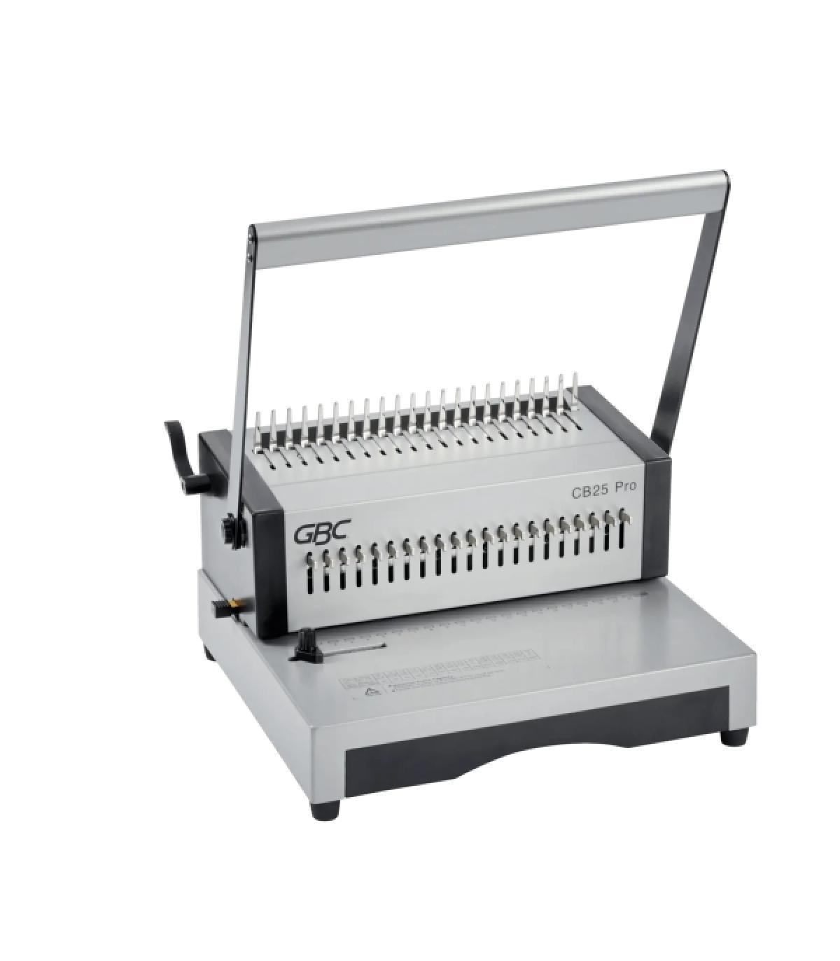La CombBind® CB25 Pro es una encuadernadora de canutillo manual fiable y resistente, diseñada para agilizar tus tareas cotidianas en la oficina, en casa y el colegio. Las espigas selectoras ajustables permiten adaptarse sin esfuerzo a tamaños de papel de hasta A4, con la flexibilidad de personalizar la profundidad de los márgenes. Diseñada para facilitar su uso, cuenta con una práctica bandeja de recogida de recortes para un acceso rápido. Con capacidad para perforar hasta 25 hojas A4 de 70 g/m2, esta resistente encuadernadora A4 puede encuadernar hasta 500 hojas a la vez con espirales de 51 mm, lo que la convierte en la opción ideal para organizar documentos de forma eficaz. Color plateado.