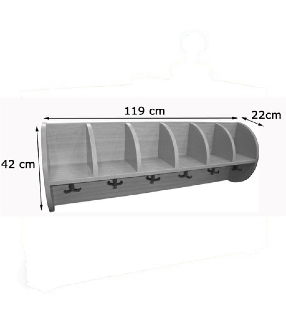 Mueble casillero con 6 casillas de separaciones redondeadas y extremos en forma de semicírculo, fabricado en melamina de haya, con tablero de 19 mm separadores de casillas y trasera de 19 mm, para ofrecer mayor rigidez, estabilidad y sujeción, cantos de PVC de 2mm. Dispone de 6 perchas giratorias fabricadas en polipropileno con aristas redondeadas y sistema triple colgador, para poder colgar la vestimenta del niño. Percha giratoria.Garantizado por los ensayos realizados en centro tecnológico de certificación de mobiliario TECNALIA.