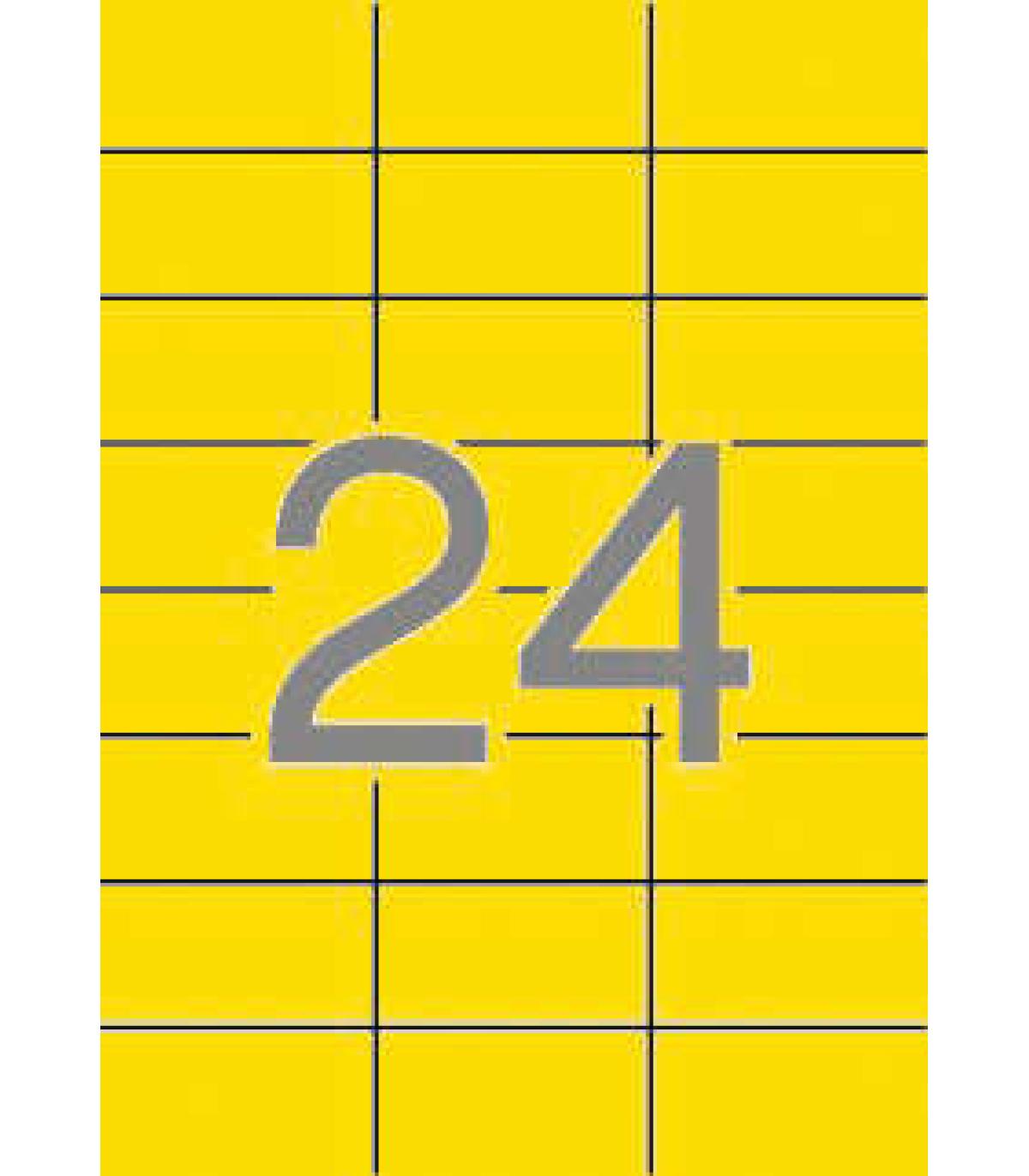 Las etiquetas amarillas con cantos rectos y tamaño de 70,0 x 37,0 mm con adhesivo permanente son ideales para destacar la información en sobres de envío, paquetes u objetos. Este pack incluye 20 hojas con un total de 480 etiquetas.