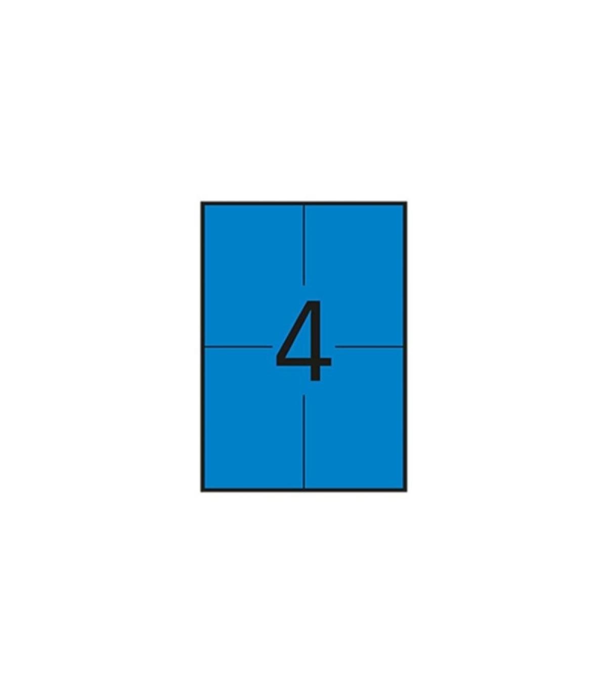 Las etiquetas azules con cantos rectos y tamaño de 105,0 x 148,0 mm con adhesivo permanente son ideales para destacar tu información en un sobre de envío, paquete u objeto. Este pack contiene 20 hojas, lo que equivale a 80 etiquetas.