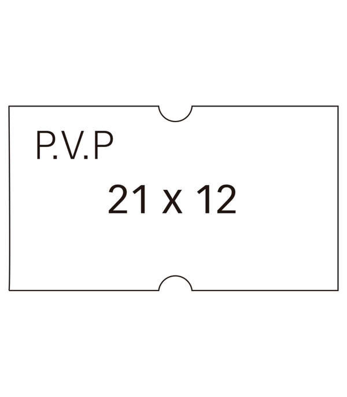 Etiquetas blancas de alta calidad para máquinas etiquetadoras de precios de 1 línea. Este pack incluye 6 rollos con 1.000 etiquetas cada uno, con un tamaño de 21 x 12 mm. Las etiquetas tienen adhesivo removible y cantos rectos para una fácil aplicación y retirada. Están especialmente diseñadas para el marcaje de precios, con el texto P.V.P preimpreso en la parte superior izquierda. Son compatibles con las etiquetadoras APLI modelo 101418 y 101948.