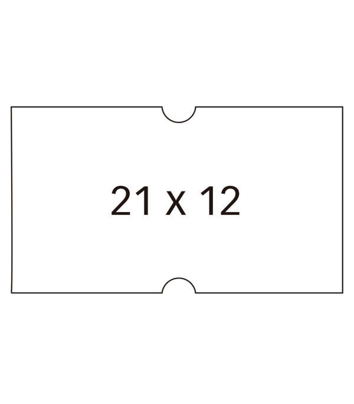 Las etiquetas blancas tamaño 21 x 12 mm para máquinas etiquetadoras de precios de 1 línea son un producto de alta calidad que te permitirá marcar de forma clara y precisa tus precios, referencias, fechas y cualquier otra información que necesites. Estas etiquetas vienen en un pack con 6 rollos, cada uno con 1.000 etiquetas, lo que te asegura una gran cantidad de etiquetas para tus necesidades. Además, estas etiquetas tienen adhesivo permanente con cantos rectos, lo que las hace muy fáciles de usar y colocar. Las especificaciones del producto son las siguientes: