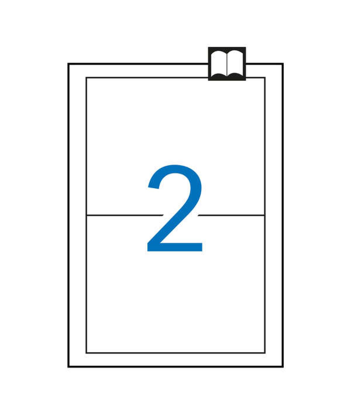 Etiquetas blancas cantos rectos tamaño 175,0 x 135,0 mm con adhesivo permanente para múltiples usos. Pack con 100 hojas (200 etiquetas). Perfectas para identificar envíos de correspondencia, objetos, paquetería o para clasificar.