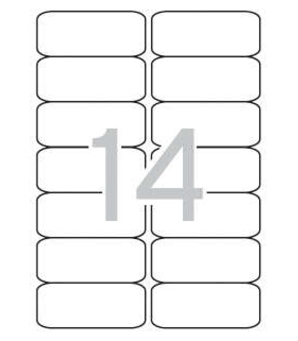 Etiquetas blancas cantos romos de tamaño 99,1 x 38,1 mm con adhesivo permanente para múltiples usos. Este pack incluye 25 hojas con un total de 350 etiquetas. Son perfectas para identificar envíos de correspondencia, objetos, paquetería o para clasificar. Además, ofrecen una excelente calidad de impresión en impresoras inkjet, láser o fotocopiadoras.