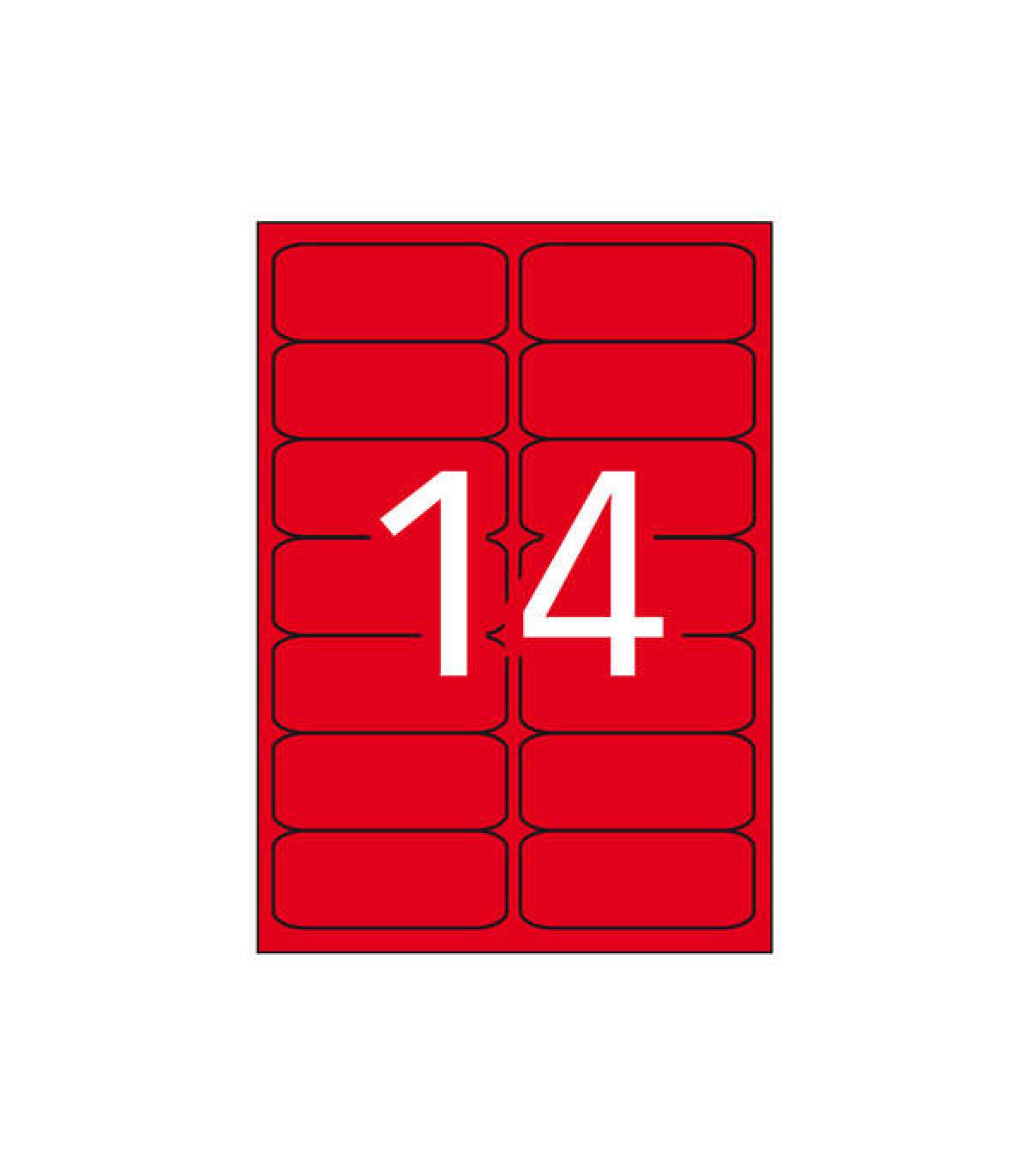 Las etiquetas adhesivas rojas flúor con cantos romos y tamaño de 99,1 x 38,1 mm son el producto perfecto para destacar cualquier objeto o información relevante. Este pack incluye 20 hojas con un total de 280 etiquetas con adhesivo permanente.