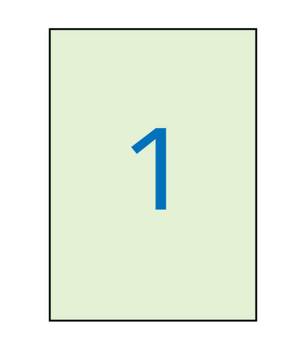 Las etiquetas verde pastel cantos rectos tamaño 210,0 x 297,0 mm con adhesivo permanente son ideales para resaltar o identificar sobres u objetos en ocasiones especiales. Este pack contiene 20 hojas (20 etiquetas) de excelente calidad de impresión en impresoras inkjet, láser o fotocopiadoras. Las características de este producto son: