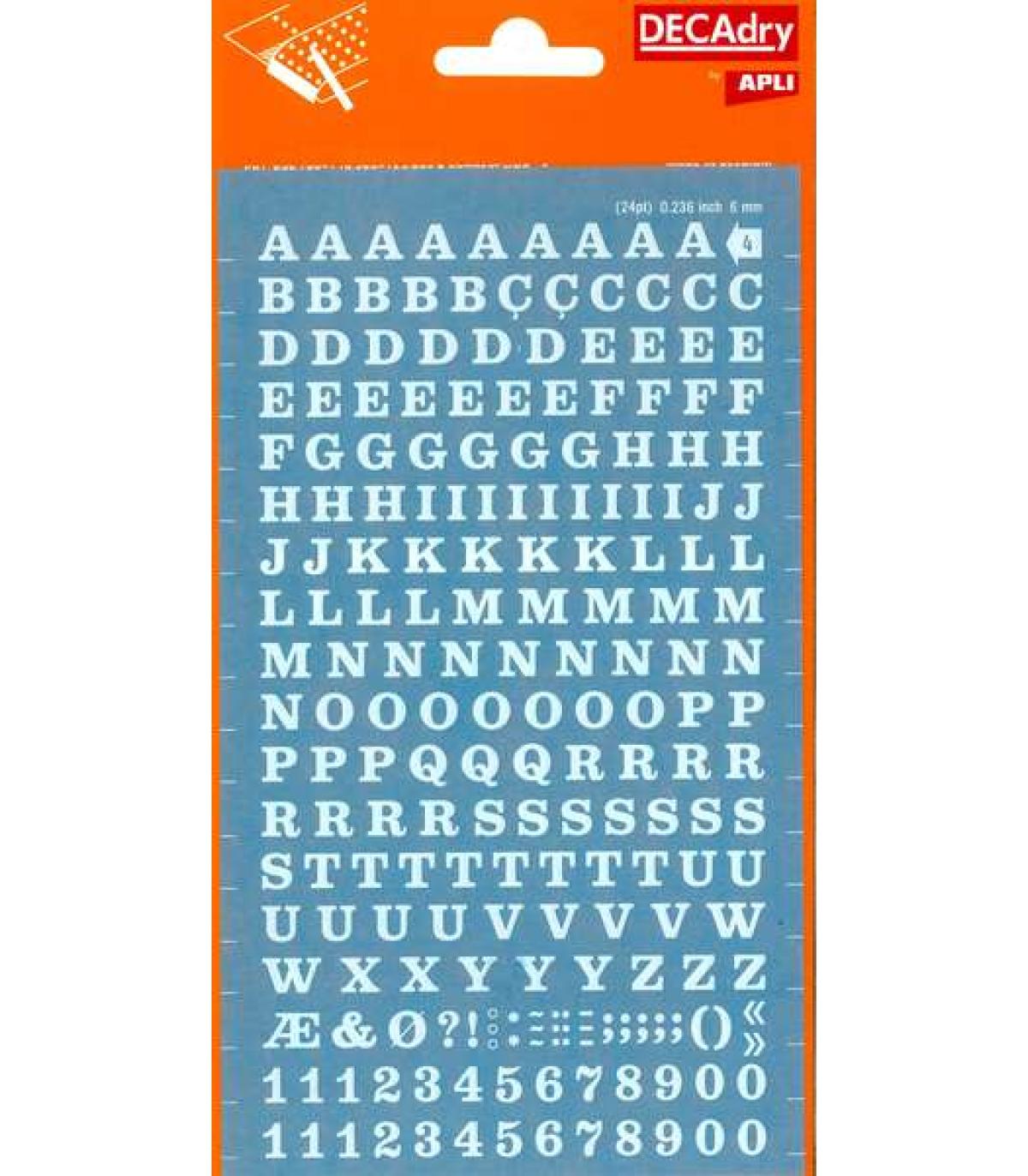Letras y números adhesivos de altura 6 mm (24 pt) en color blanco son la solución perfecta para identificar y señalizar todo lo que necesites de manera rápida, limpia y eficaz. Cada pack contiene 1 hoja con 214 caracteres, lo que te permitirá tener suficientes opciones para personalizar tus objetos.