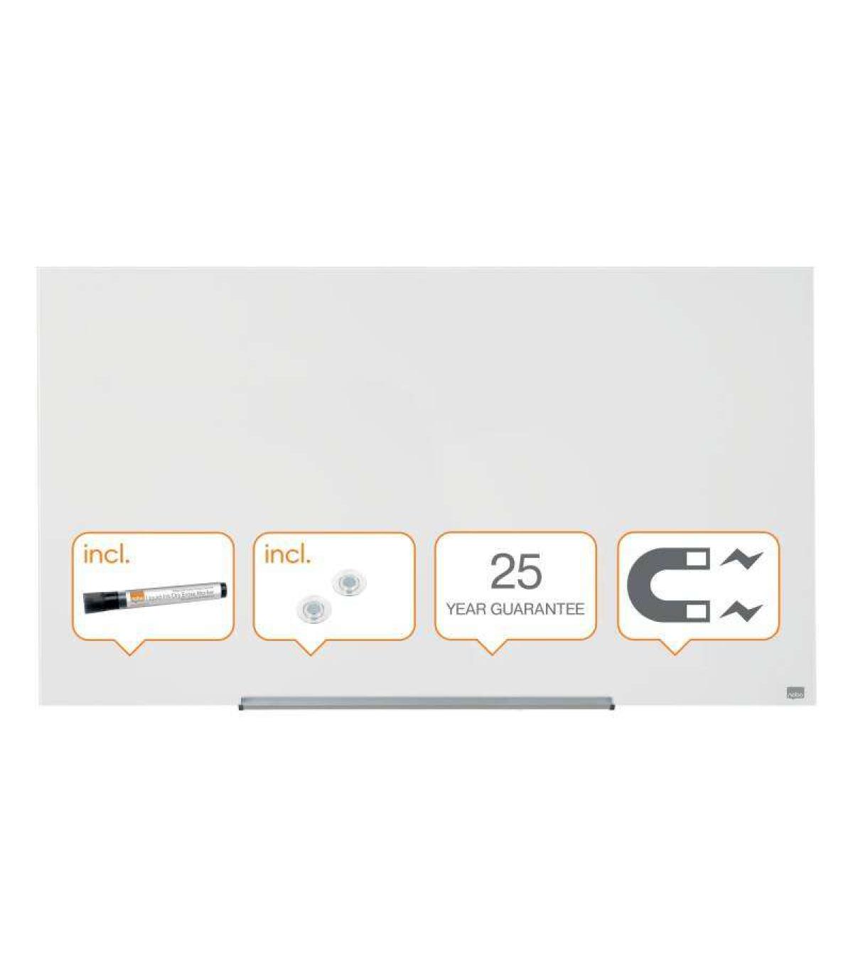 - Blanco brillante Superficie de la pizarra magnética de cristal con una ultra capacidad de borrado y la máxima resistencia a las manchas de tinta, marcas de rotulador, arañazos y abolladuras.