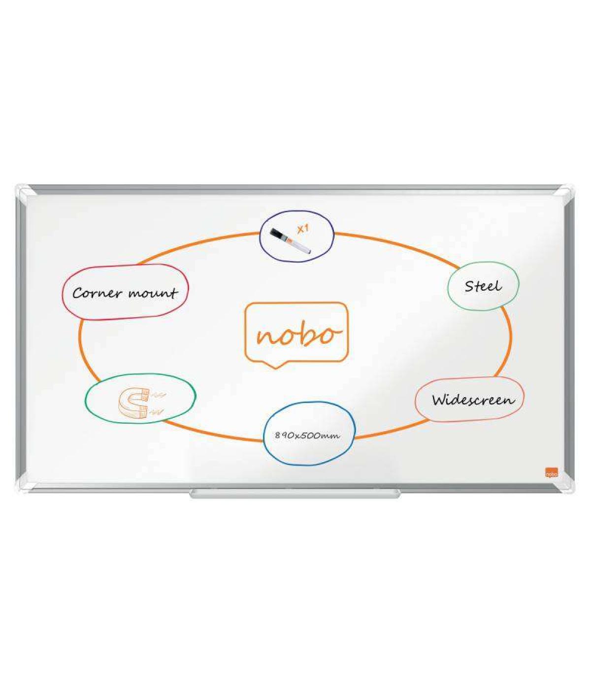 Una pizarra magnética de acero lacado de formato panorámico Nobo Premium Plus 890x500 mm es un producto ideal para aquellos que buscan una superficie de pizarra magnética de alta calidad y durabilidad.
