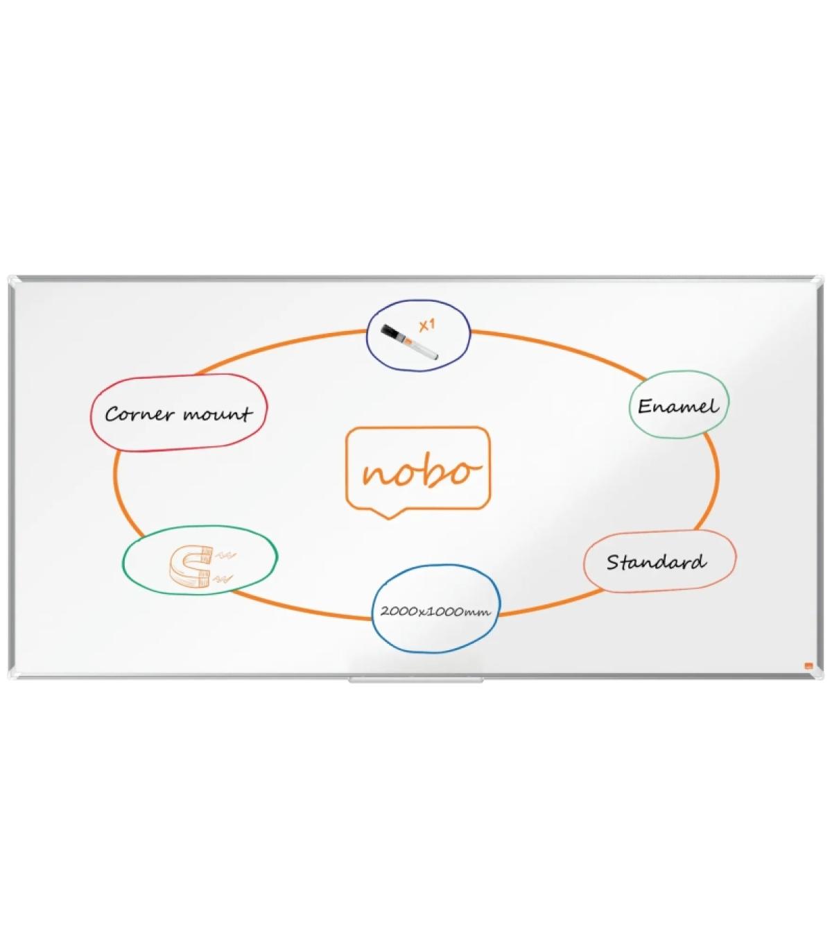 La pizarra magnética de acero vitrificado Nobo Premium Plus de 2000x1000mm es una excelente opción para aquellos que buscan una superficie de alta calidad para escribir y presentar información de manera efectiva.