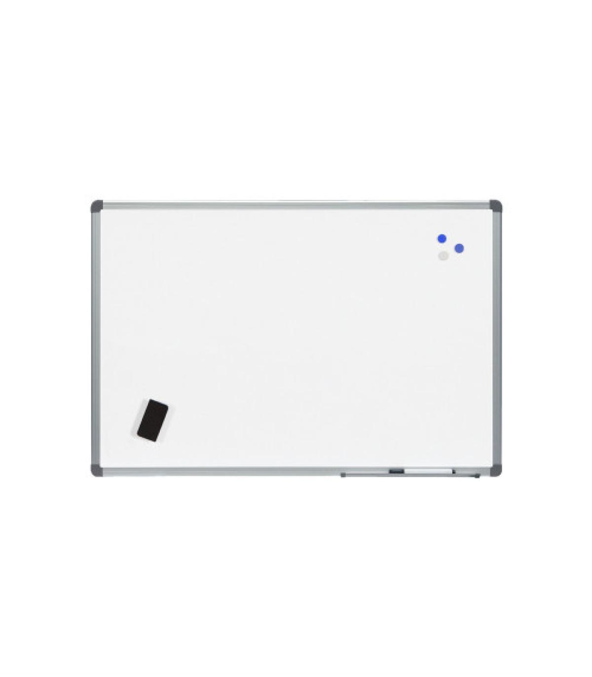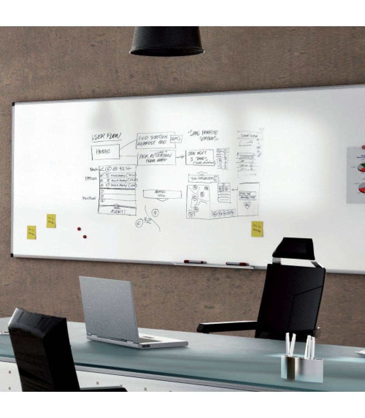 Pizarras lacadas con marco de aluminio anodizado, cantoneras embellecedoras de PVC y trasera galvanizada. Superficie con 2 años de garantía y apta para la escritura con rotuladores de borrado en seco. Incluye en cada pizarra una bandeja para rotuladores y sus accesorios para la instalación a pared. Vienen con el marco montado de serie. Recomendada para un uso frecuente.