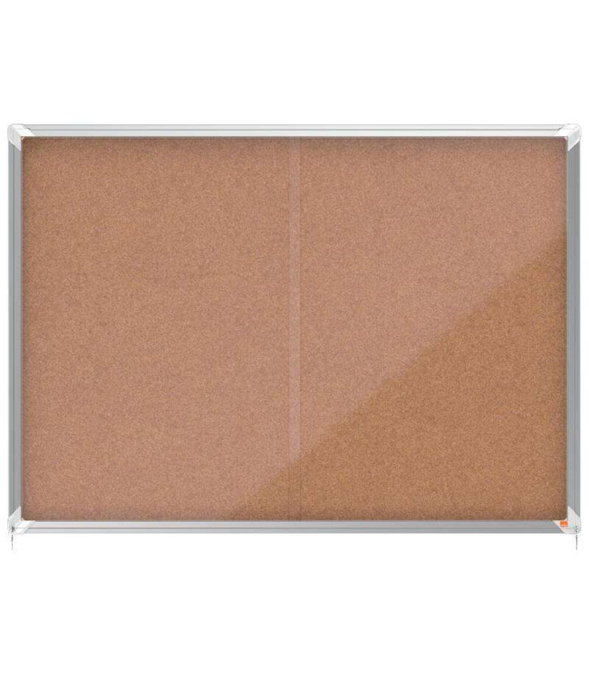 Vitrina de interior Nobo para 18 hojas A4 con superficie de corcho y puerta deslizante