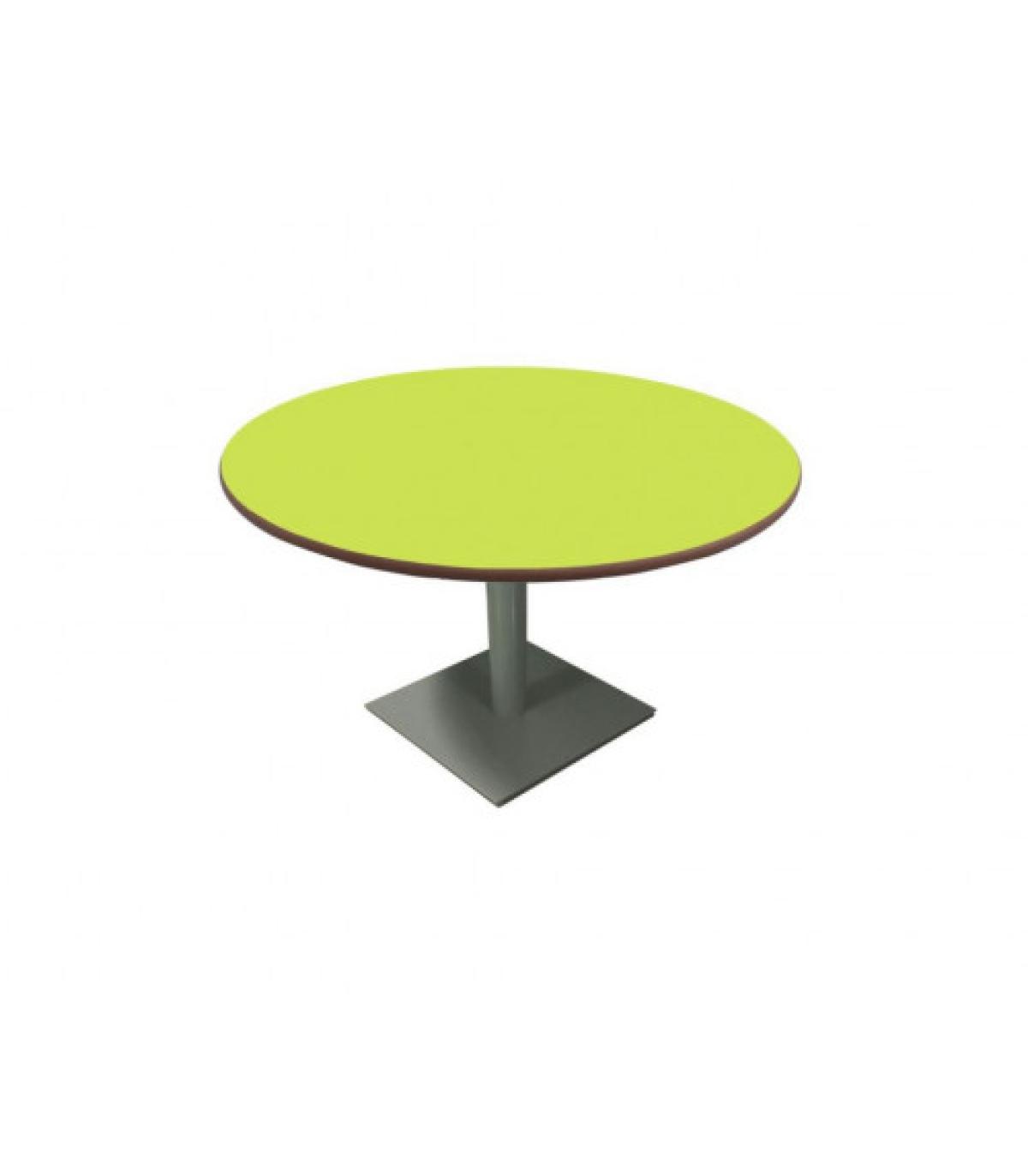 Mesa circular o cuadrada de REUNIÓN para adultos, solo disponible en talla 6 = 75 cm. Base con opción de forma circular (Ø51 x 1,2 mm) o cuadrada (51 x 51 x 1,2 mm) con tacos antideslizantes.Compuesta por una tapa en tablero MDF laminado de 21 mm de espesor con cantos redondeados con superficie y contratiro de laminado de alta presión (HPL), y por estructura de tubo metálico, montante de sección circular Ø80 x 2 mm y travesaños de perfiles metálicos de sección rectangular 40 x 20 x 1,5 mm.Acabado de estructura en pintura Epoxi.Desmontable, reduciendo así la huella medioambiental en su transporte.Garantizado por los ensayos realizados en centro tecnológico de certificación de mobiliario TECNALIA.