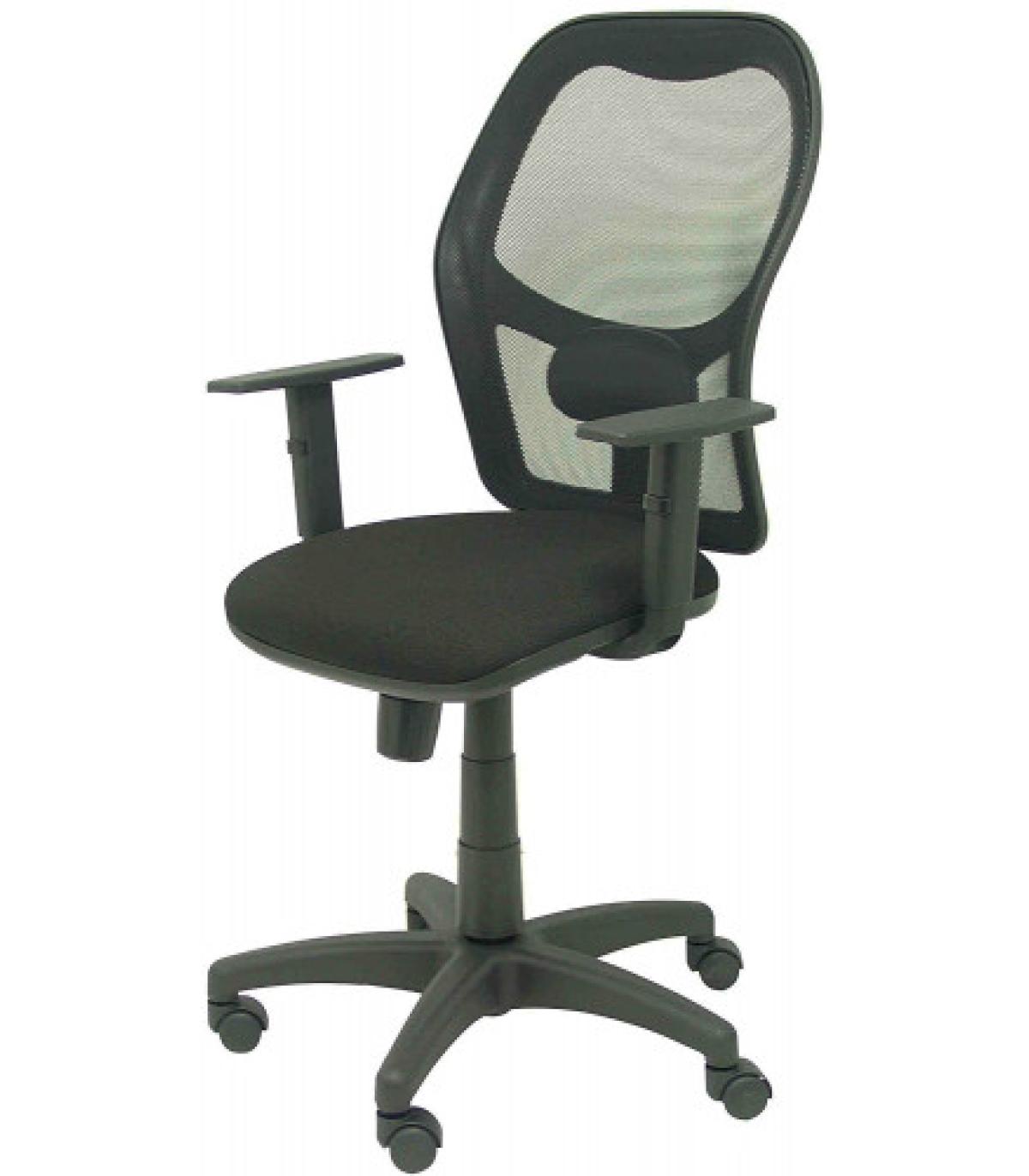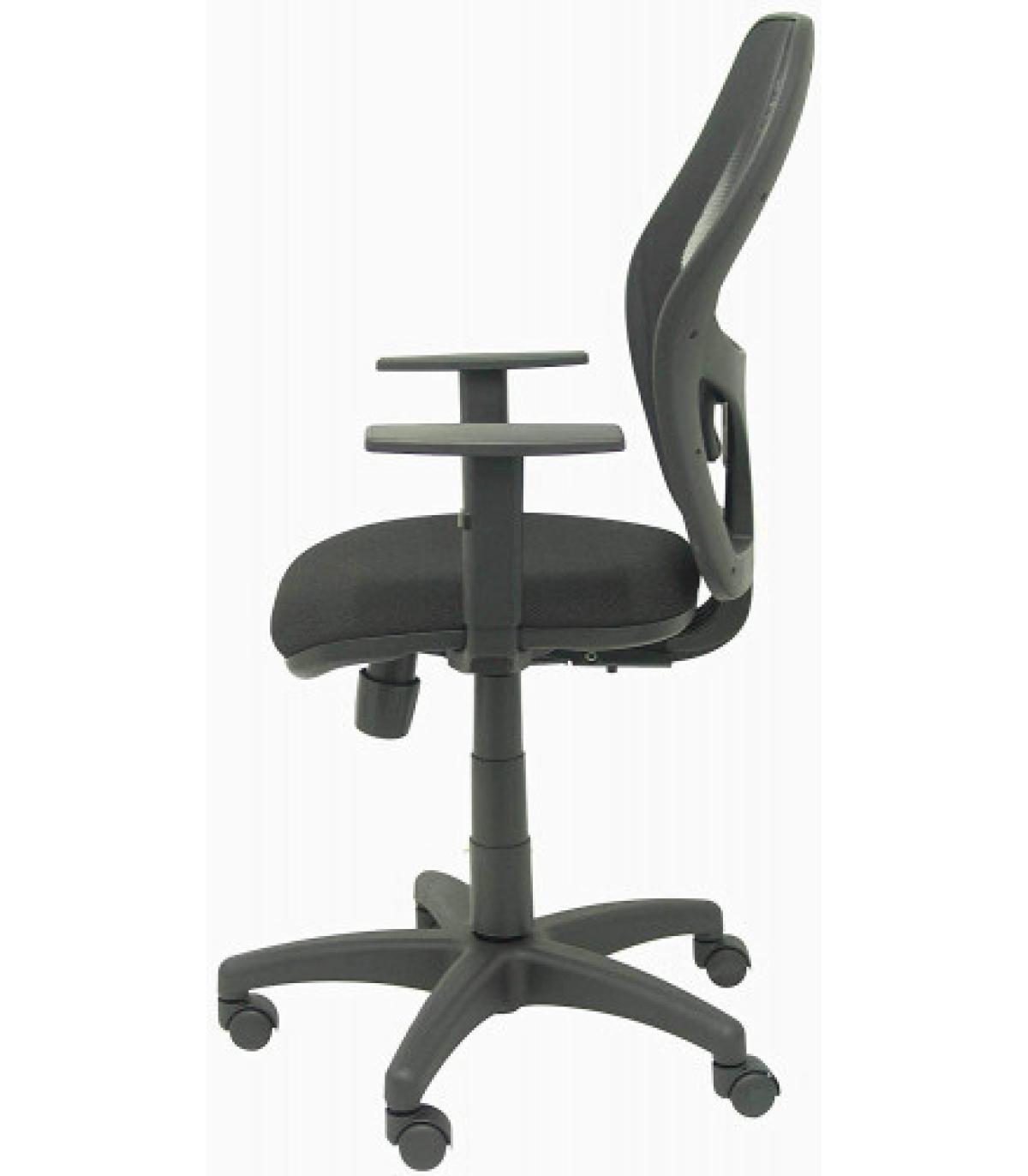 Silla de oficina ergonómica con mecanismo sincro, brazos regulables y ajustable en altura.La unión perfecta entre diseño y ergonomía. Incluye refuerzo lumbar. Ideal para trabajar durante varias horas puesto que ayuda a reducir las lesiones derivadas de malas posturas. Ideal para la oficina y para el hogar. Fabricada íntegramente en España, lo que es sinónimo de calidad.Respaldo ergonómico para una mayor adaptación de la espalda. Respaldo de malla transpirable Asiento ergonómico para una mayor comodidad del usuarioAsiento interior de madera. Asiento exterior de PVC de 20 mm de grosorRespaldo de malla transpirable en color negroAsiento tapizado en tejido BALI color negroBrazos regulables en alturaMecanismo sincro que permite la regulación del respaldo y el asiento por separadoRefuerzo lumbarRegulable en altura mediante cilindro de gasGiratoria 360ºBase poliamida de alta resistencia de 5 radios y 60 cm de diametro, en color negroRuedas de nylonUso intensivo
