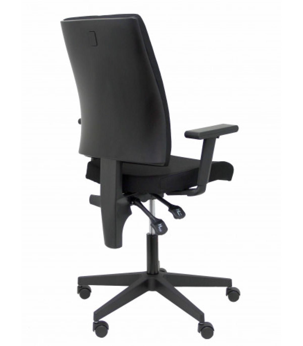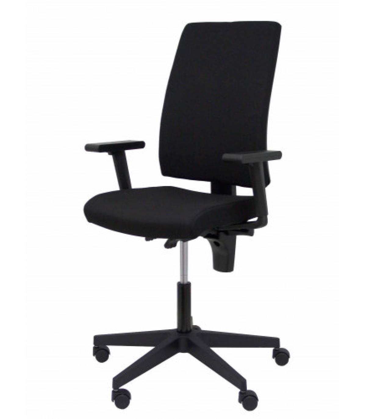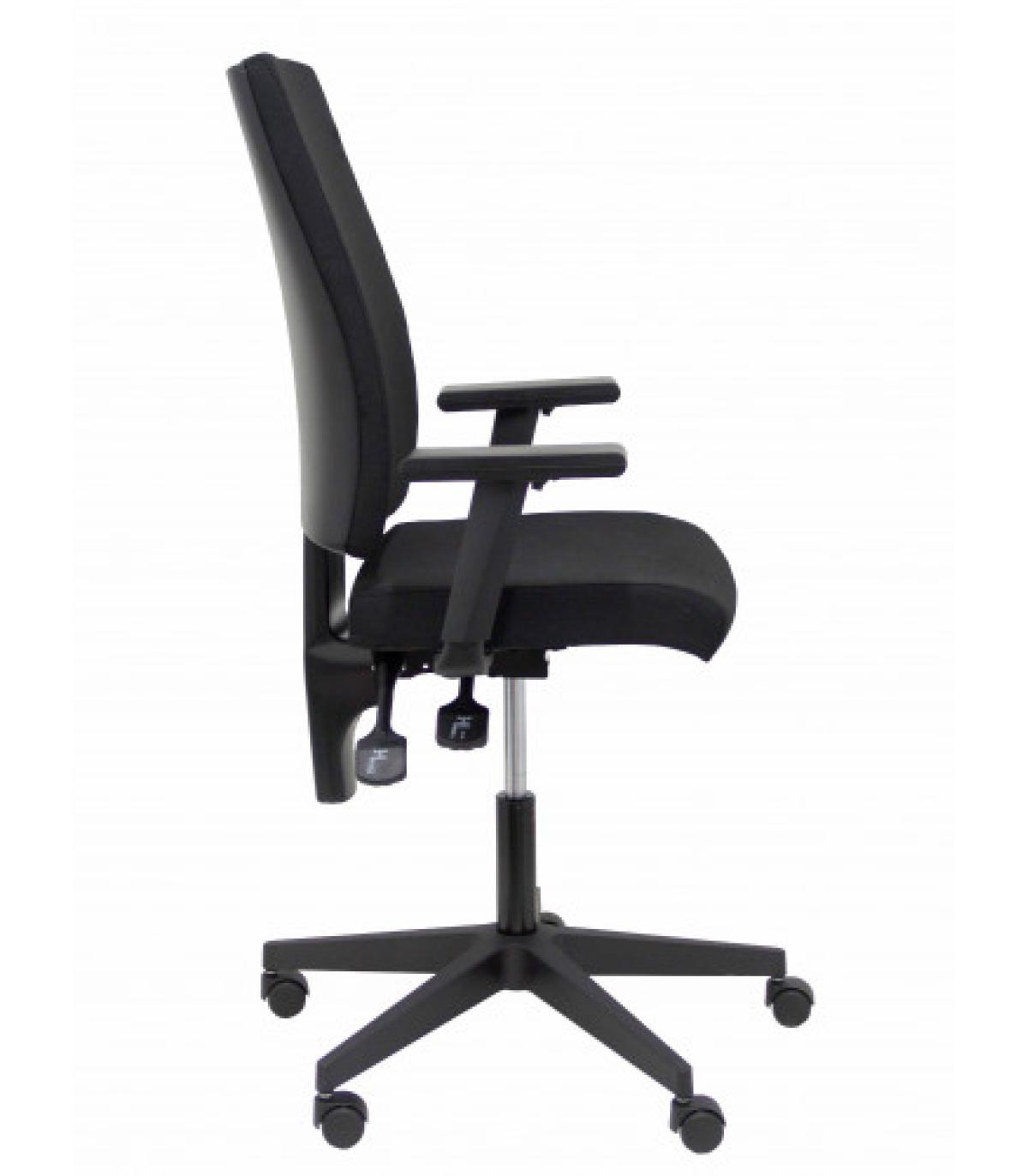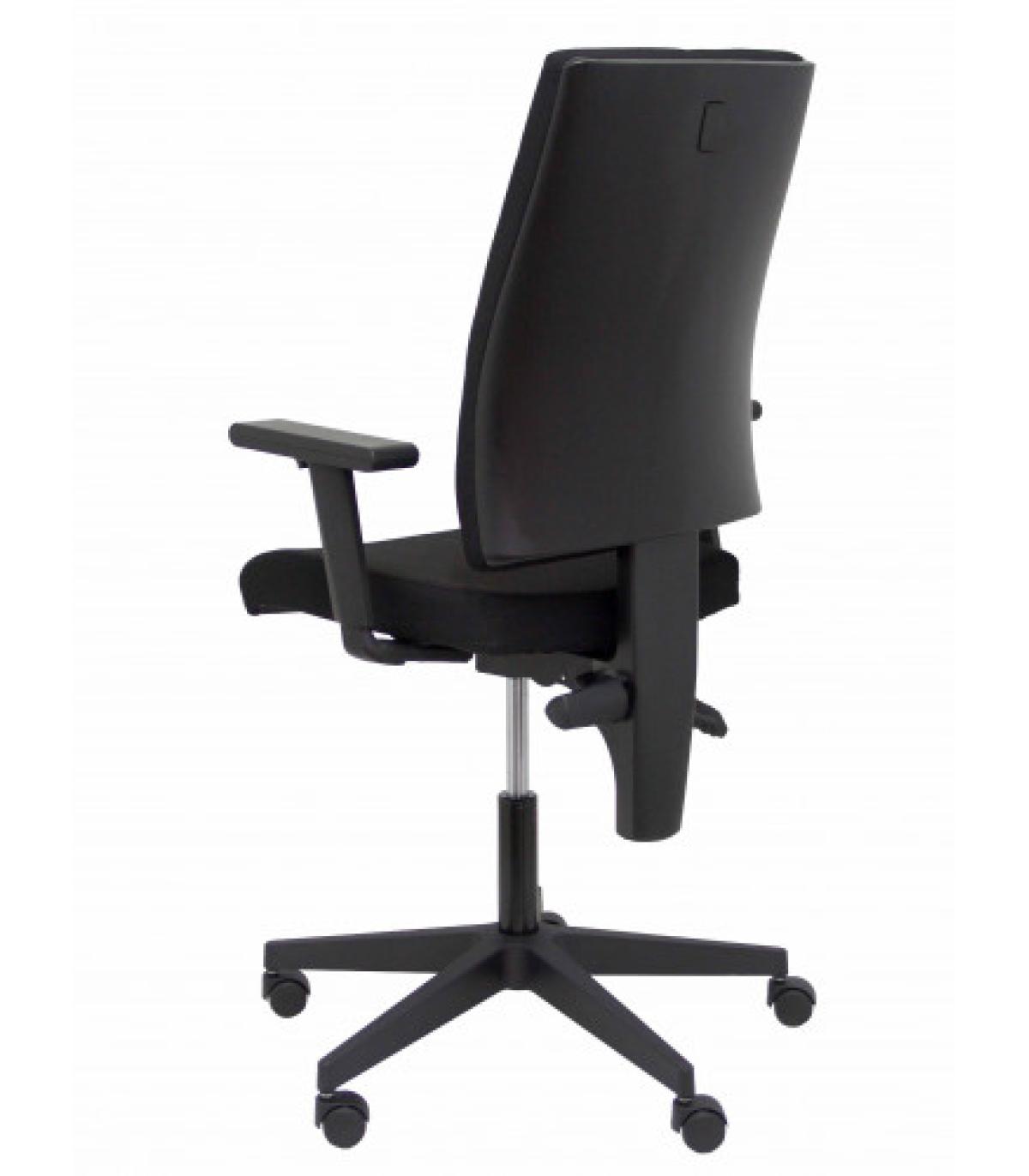 PIQUERAS Y CRESPO Silla de oficina ergonómica con mecanismo basculante y regulable en altura Tiene un diseño moderno que se adapta a la oficina de hoy en día así como una buena relación calidad/precio. También es adecuada para la habitación de los niños Detalles técnicos: Respaldo ergonómico para una mejor adaptación y transpiración de la espalda. Estructura PVC con tapizado de malla transpirable Asiento ergonómico acolchado para una mayor comodidad del usuario. Estructura del asiento de PVC y acolchado de espuma de 5 cm de espesor y 25 kg/m3 de densidad Respaldo de malla color negro y asiento tapizado en tejido ARAN. Brazos fijos incluidos de PVC color negro Mecanismo basculante multiposición con regulación de presión de la basculación Regulable en altura mediante cilindro de elevación de 10 cm de recorrido(siendo la altura en su posición más baja de 42 cm y la altura en su posición más alta de 52 cm) Giratoria 360º Telescópico en color negro Base de poliamida de alta resistencia de 5 radios y 60 cm de diámetro Ruedas de nylon con eje interno de rodamiento de acero Otros detalles: Favorece una buena postura integral para evitar posibles problemas de espalda Ergonómica.