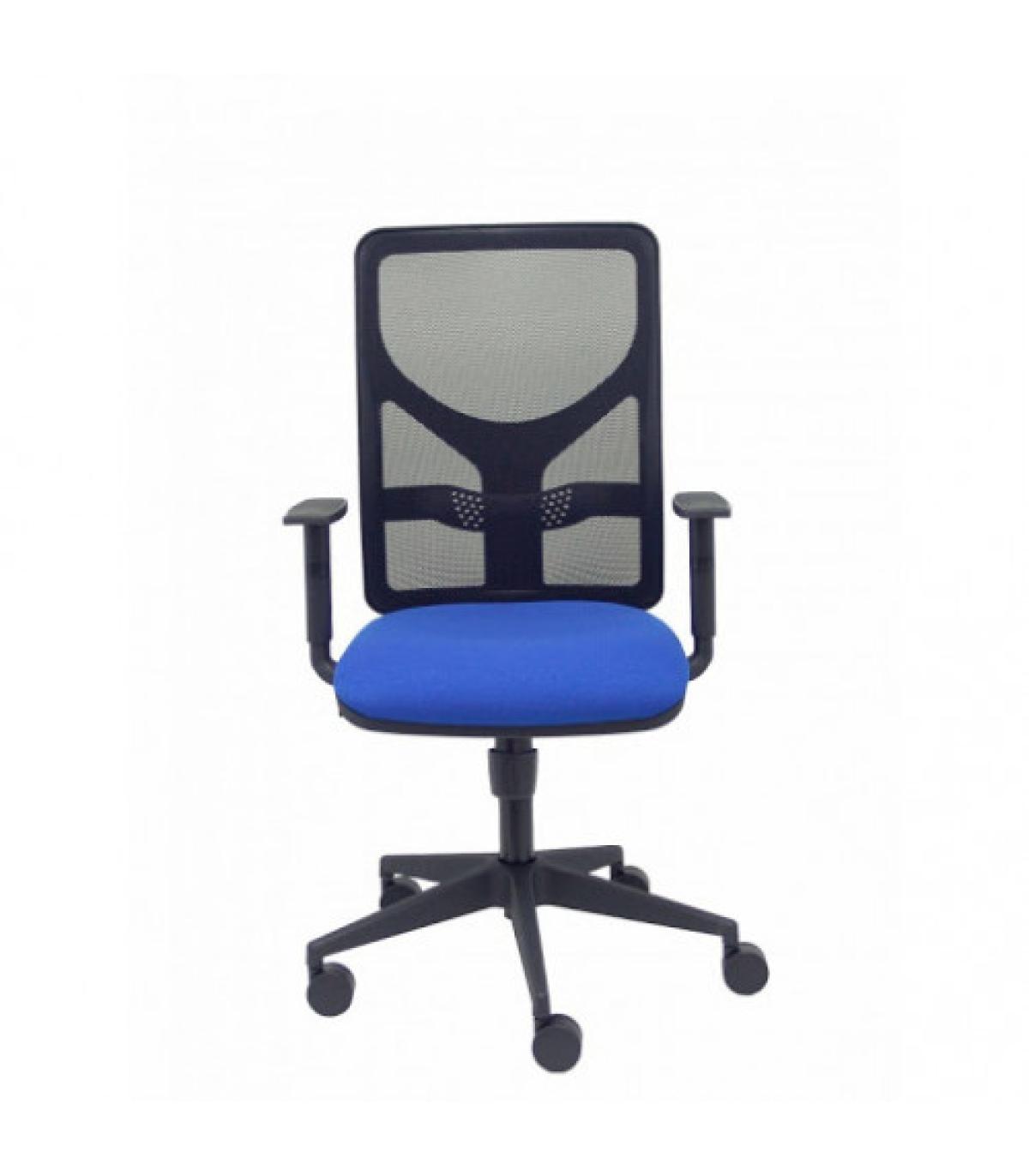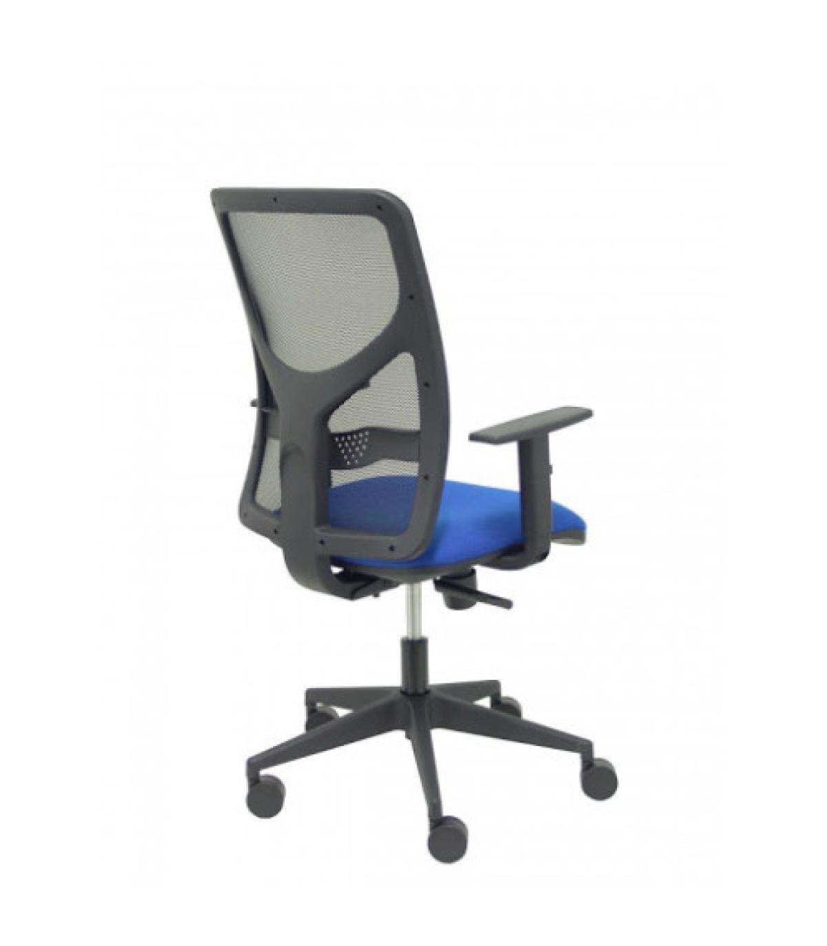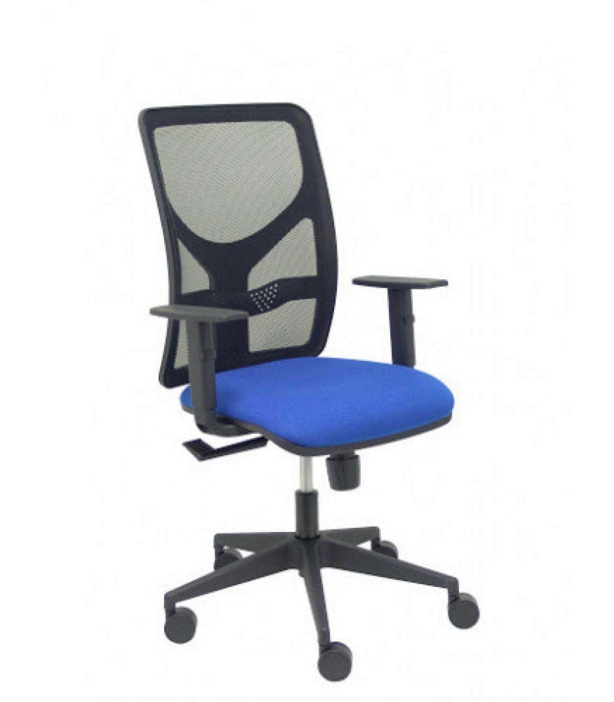 Silla de oficina ergonómica con mecanismo sincro, brazos regulables y ajustable en altura.La unión perfecta entre diseño y ergonomía. Incluye refuerzo lumbar. Ideal para trabajar durante varias horas puesto que ayuda a reducir las lesiones derivadas de malas posturas. Ideal para la oficina y para el hogar. Fabricada integramente en España, lo que es sinónimo de calidad.Respaldo ergonómico para una mayor adaptación de la espalda. Respaldo de malla transpirable Asiento ergonómico para una mayor comodidad del usuarioAsiento interior de PVC con refuerzo panal. Asiento exterior de PVC de 20 mm de grosorRespaldo de malla transpirable en color negroAsiento tapizado en tejido BALI color azul.Brazos regulables en alturaMecanismo sincro que permite la regulación del respaldo y el asientoRefuerzo lumbarRegulable en altura mediante cilindro de gas de 10 cmGiratoria 360ºBase poliamida de alta resistencia de 5 radios y 60 cm de diametro, en color negroRuedas de nailonUso intensivo