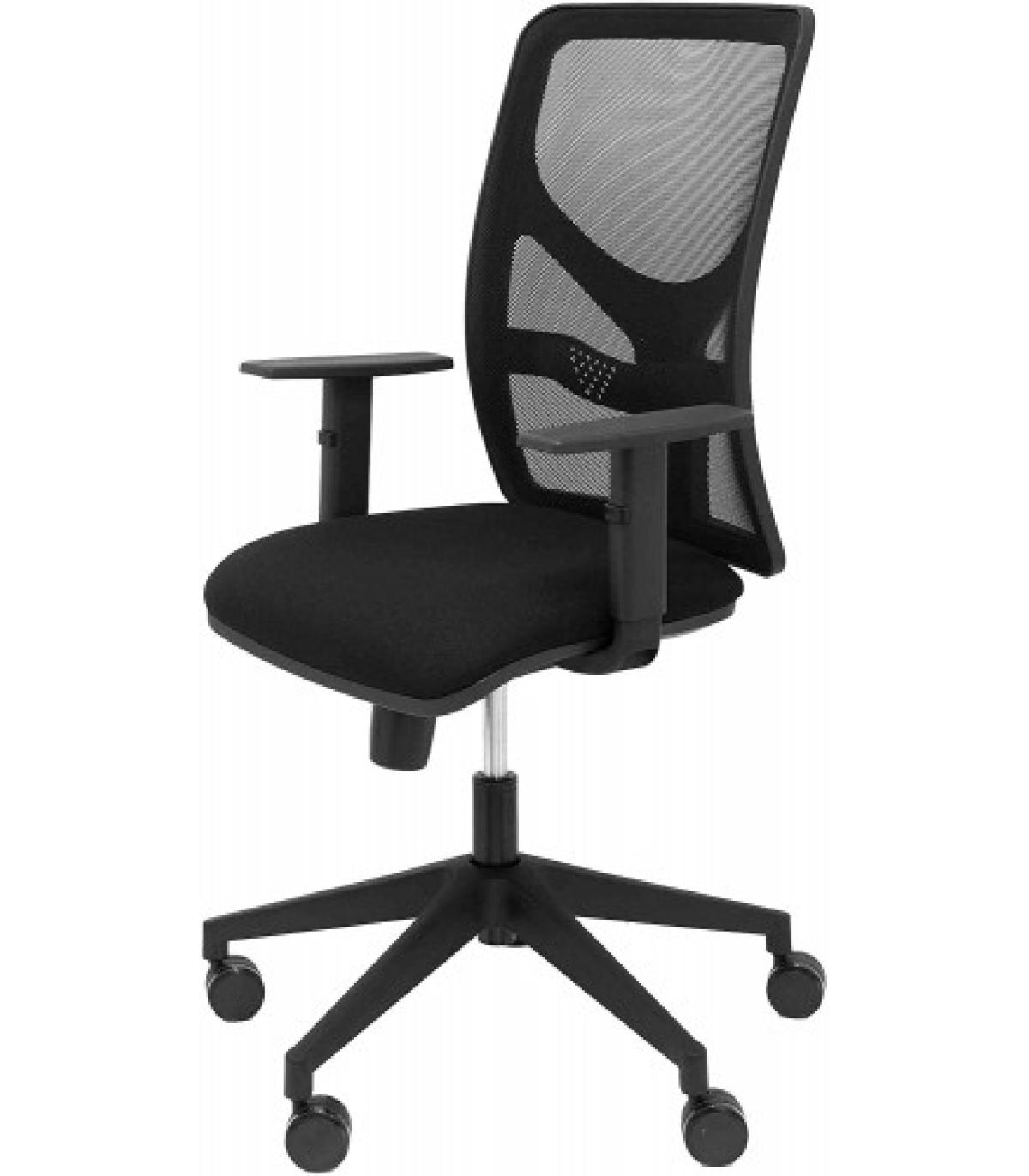 Silla de oficina ergonómica con mecanismo sincro, brazos regulables y ajustable en altura.La unión perfecta entre diseño y ergonomía. Incluye refuerzo lumbar. Ideal para trabajar durante varias horas puesto que ayuda a reducir las lesiones derivadas de malas posturas. Ideal para la oficina y para el hogar. Fabricada integramente en España, lo que es sinónimo de calidad.Respaldo ergonómico para una mayor adaptación de la espalda. Respaldo de malla transpirable Asiento ergonómico para una mayor comodidad del usuarioAsiento interior de PVC con refuerzo panal. Asiento exterior de PVC de 20 mm de grosorRespaldo de malla transpirable en color negroAsiento tapizado en tejido BALI color negroBrazos regulables en alturaMecanismo sincro que permite la regulación del respaldo y el asiento.Refuerzo lumbarRegulable en altura mediante cilindro de gas de 10 cmGiratoria 360ºBase poliamida de alta resistencia de 5 radios y 60 cm de diametro, en color negroRuedas de nylonUso intensivo