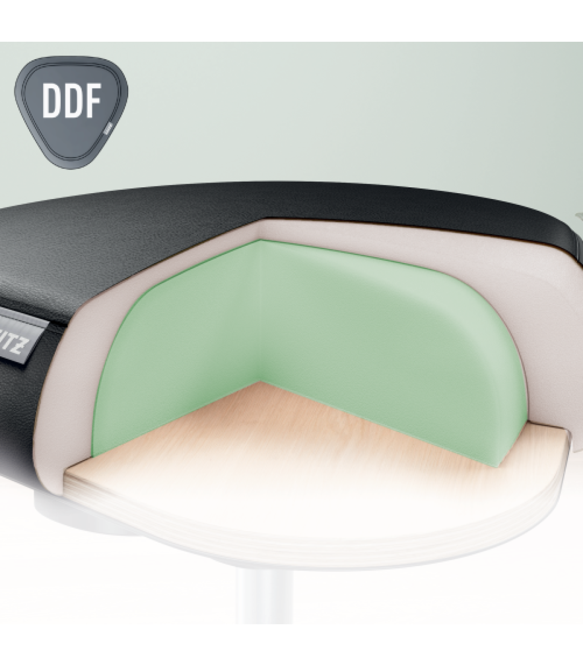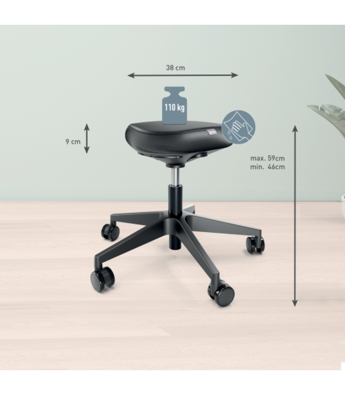 Leitz 65780095. Tipo de asiento: Asiento acolchado, Color del asiento: Negro, Material del asiento: Espuma. Ancho: 600 mm, Profundidad: 600 mm, Altura (min.): 46 cm. Certificados de conformidad: GS mark, TÜV mark