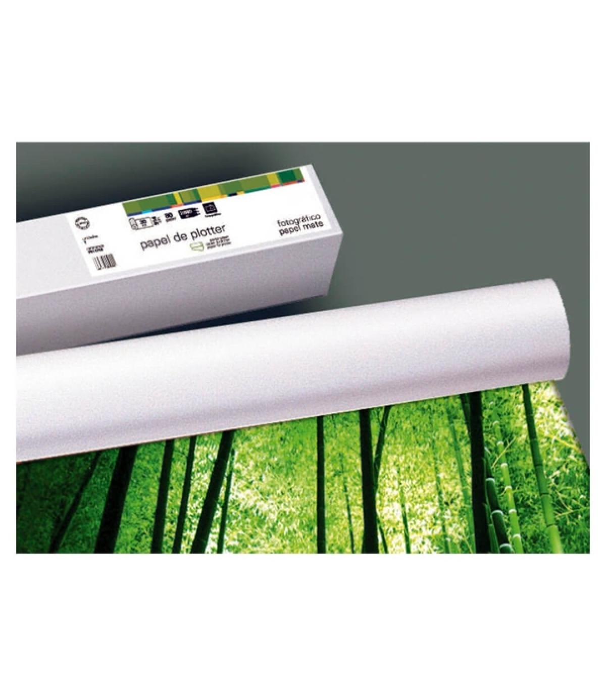 Papel Plotter mate de 140 g en tamaño 1067 x 30. Papel estucado mate con rápido secado. Apto para tintas base agua. Ideal para impresiones de masa de color. Disponible en varias medidas.