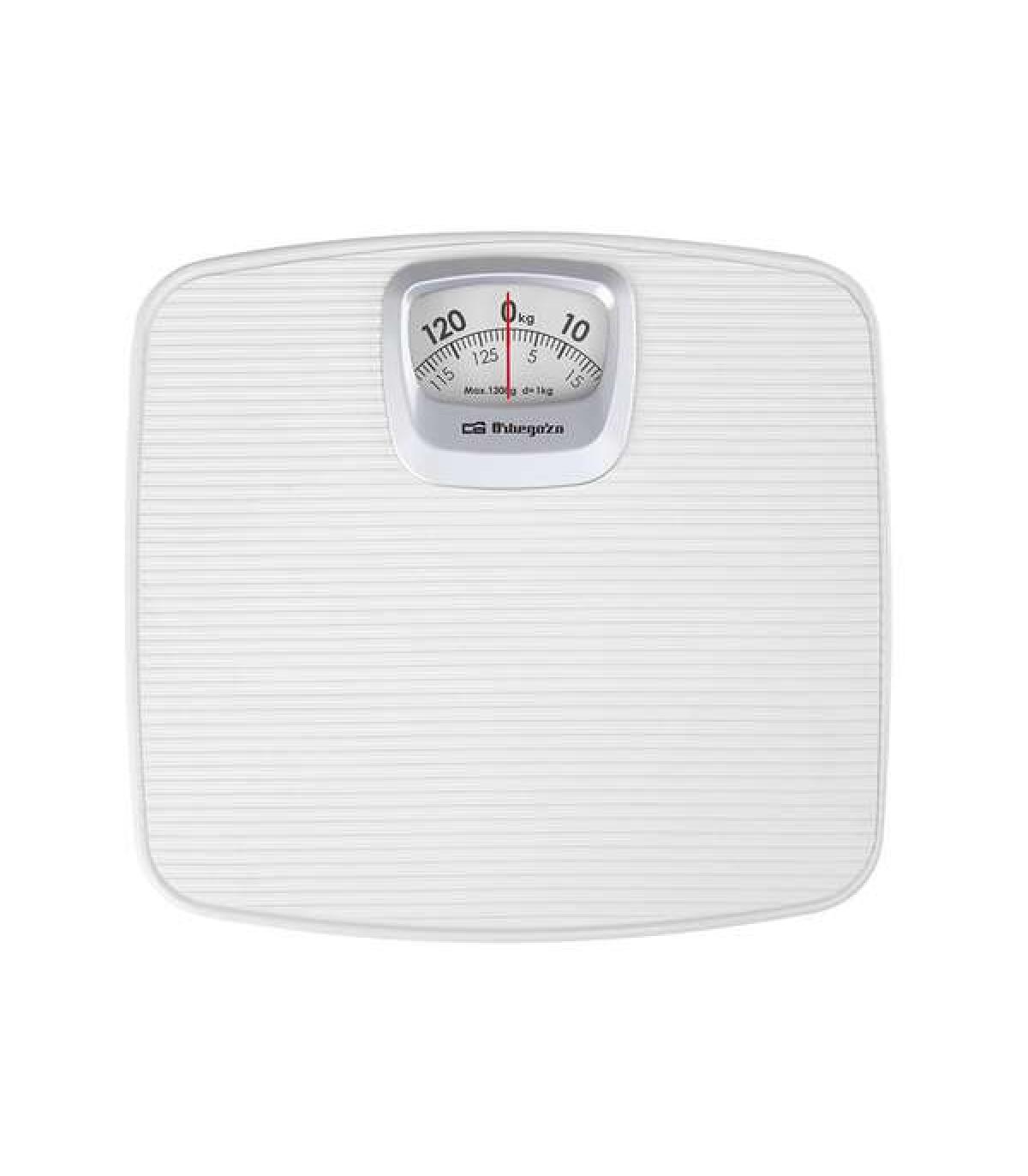 Las básculas de baño mecánicas de Orbegozo son ideales para hacer un seguimiento a la efectividad de cualquier programa de control de peso que se emprenda. Ocupan poco espacio, por lo que no estorban. Además, son ligeras y fáciles de limpiar. Si solo quieres llevar un control periódico de su peso corporal, pero no participas en ningún programa dietético, igualmente te será de gran utilidad esta báscula mecánica. Tiene superficie blanca con diseño antideslizante, lo que nos proporciona mayor seguridad. Como toque decorativo, esta báscula posee un anillo brillante que la hace más atractiva. Soporta un peso máximo de 130 kilogramos y tiene un escalado de 1 kg. La báscula de baño mecánica PB 2011 de Orbegozo, además de útil es atractiva, pequeña y ligera. Ideal para mantenerla en cualquier rincón del baño o cuarto, o debajo de algún mueble pequeño donde no estorbe.
