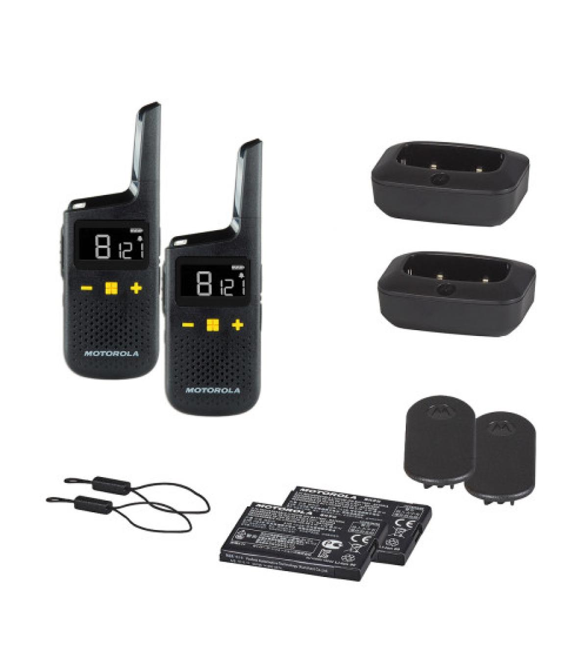 Walkie Talkie Motorola XT185 permite comunicaciones instantáneas y claras con solo tocar un botón. Desarrollado para negocios y usuarios comerciales, el Motorola XT185 es ideal para estar en contacto con el personal, compañeros o miembros del equipo de forma rápida y sencilla y con un coste muy reducido. Con su batería de larga duración , tamaño compacto, peso ligero y fácil emparejamiento, el XT185 es la radio perfecta para el usuario consciente de los costes. Hasta 8 Kms de alcance. 16 Canales PMR446. 121 Códigos de privacidad. Bloqueo automático del teclado. Hasta 24 horas de batería. Potencia de transmisión 500 mW. Función de emparejamiento sencillo. Escaneo/ Monitorización. Manos libres. Resistente al agua y al polvo IP54. Ligero y compacto.